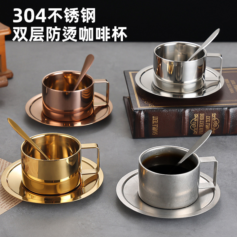 一諾厨房304ステンレスレトロコーヒー碗皿ヨーロッパ式工業風セットアフタヌーンティーアメリカラテカップ