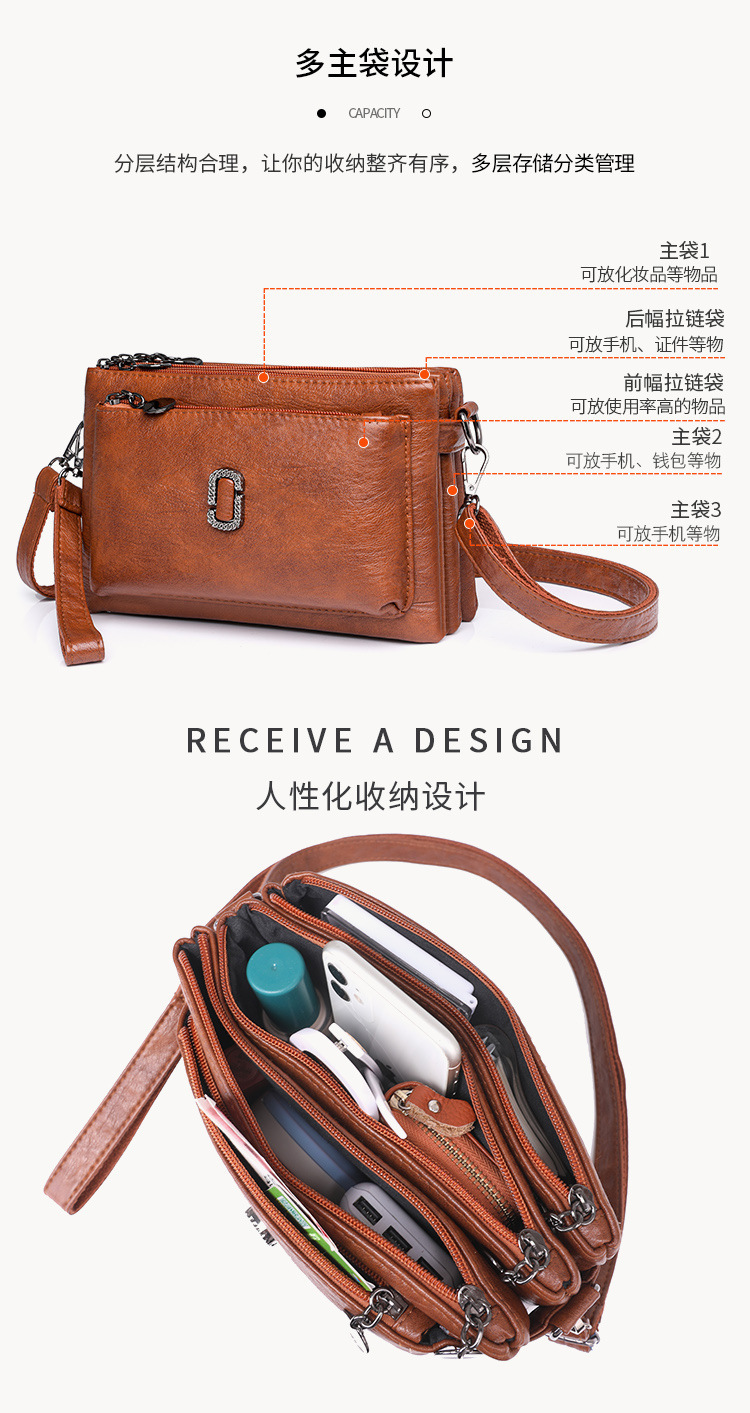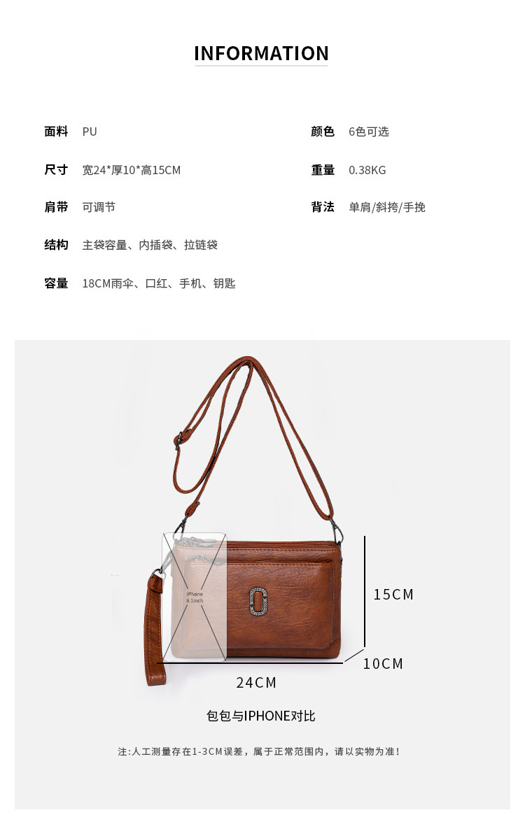 携帯電話バッグ財布シングル肩斜めショルダーバッグハンドルバッグ新puハンドバッグ2024ファッション多層女性
