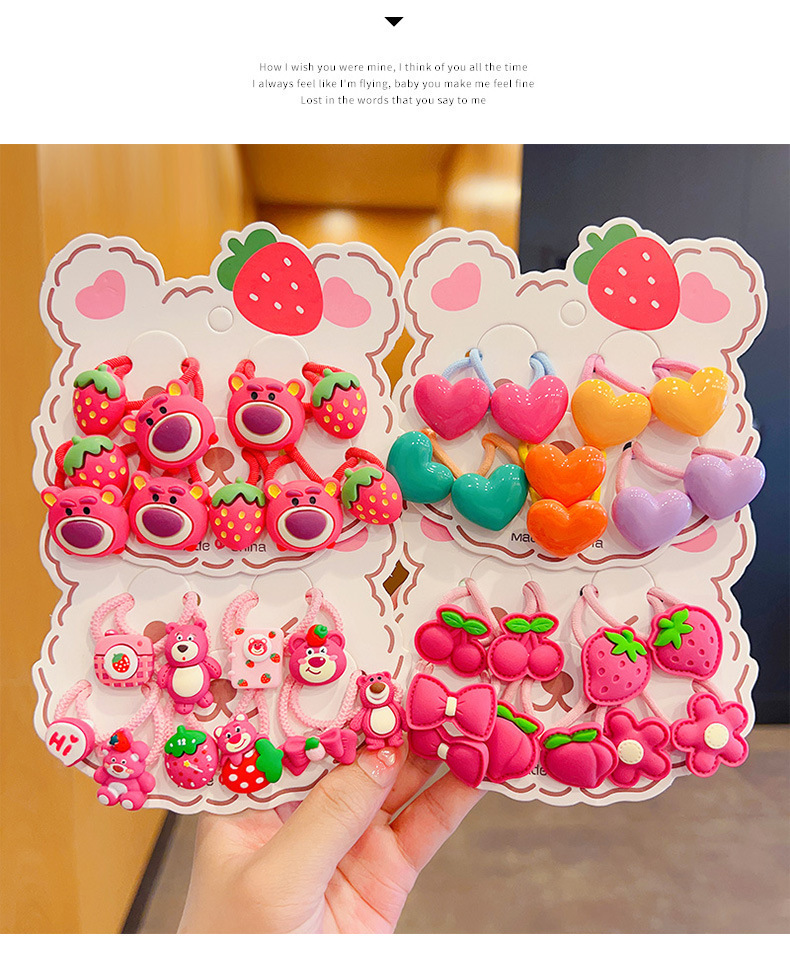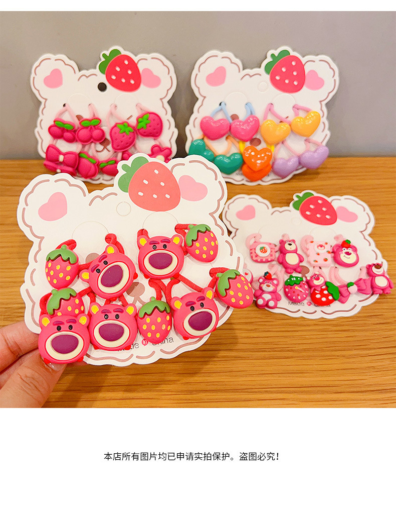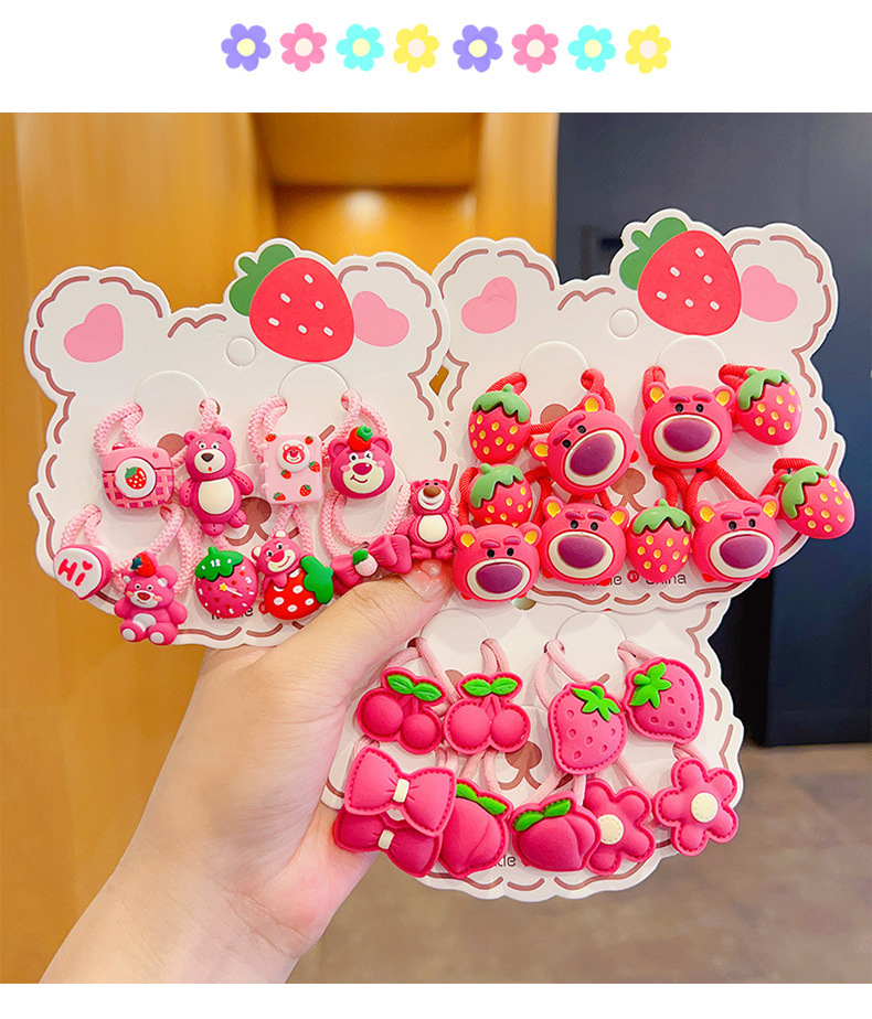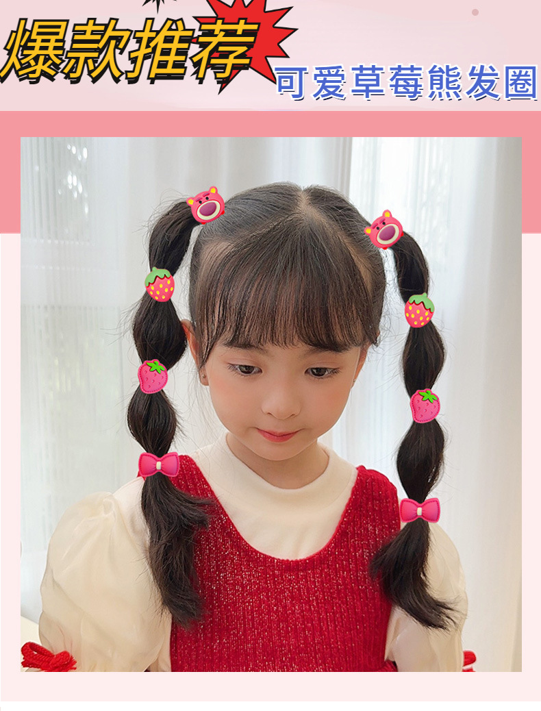 儿童发饰卡通草莓熊发圈发绳可爱扎头发橡皮筋小女孩头绳套装批发