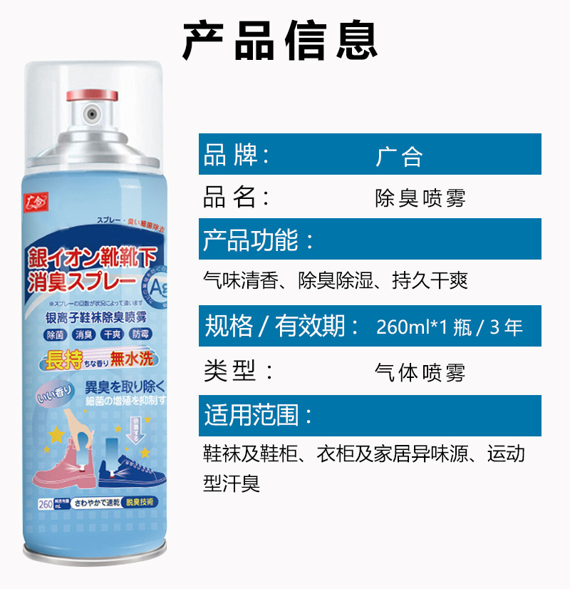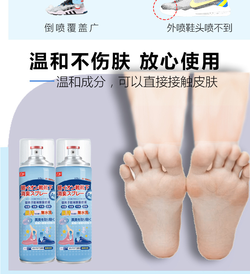 靴や靴下の消臭スプレー、足の臭いを消す銀イオン消臭スプレー、靴箱用消臭剤、銀イオン消臭