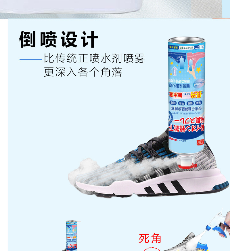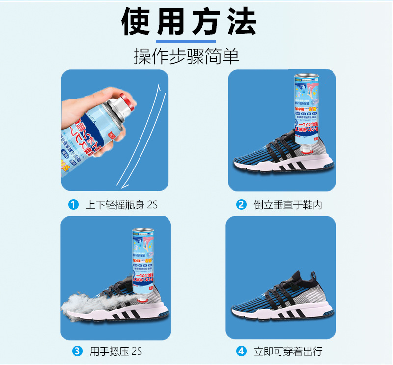 靴の消臭剤のスプレーの青い靴は臭いを取り除きます。
