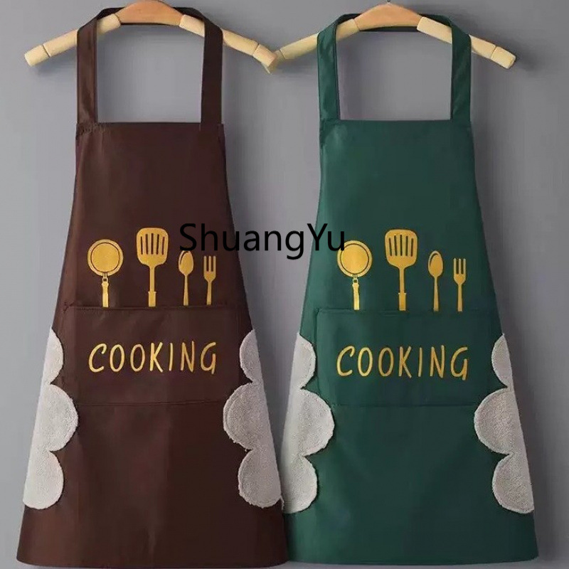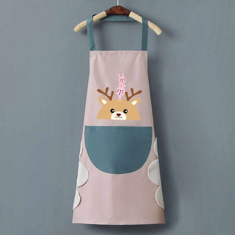 メーカーはプリントロゴエプロンガーランドウサギ手拭き女性キッチン防水耐油エプロンファッション韓国版カップルをサポートしています