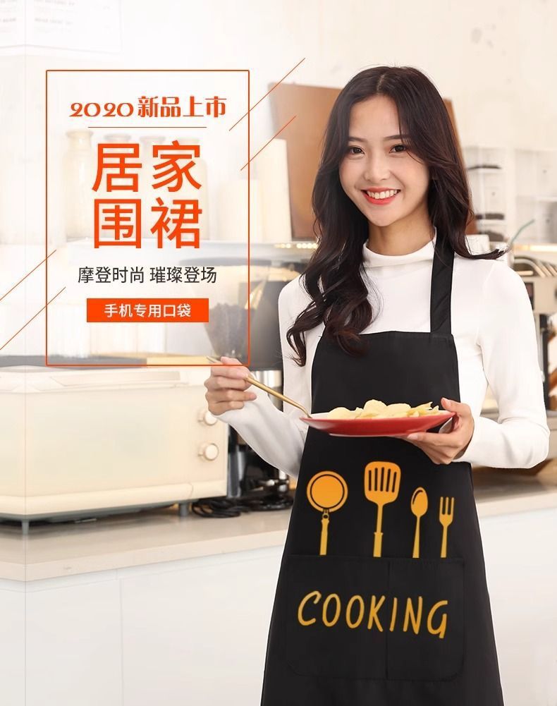 厨房新款可擦围裙防水做饭防油上班家用男女工作服围腰简约围裙