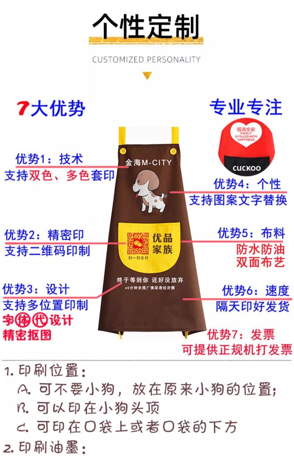 ロゴ印刷可能、工場直送、キッチン用、料理用、家庭用、作業用、油汚れ防止、韓国風エプロン
