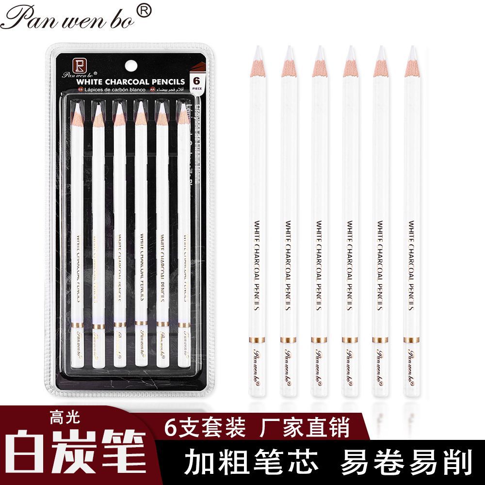 跨境亚马逊高光白炭笔6支铅笔套装速写加粗画笔软中硬碳笔批发