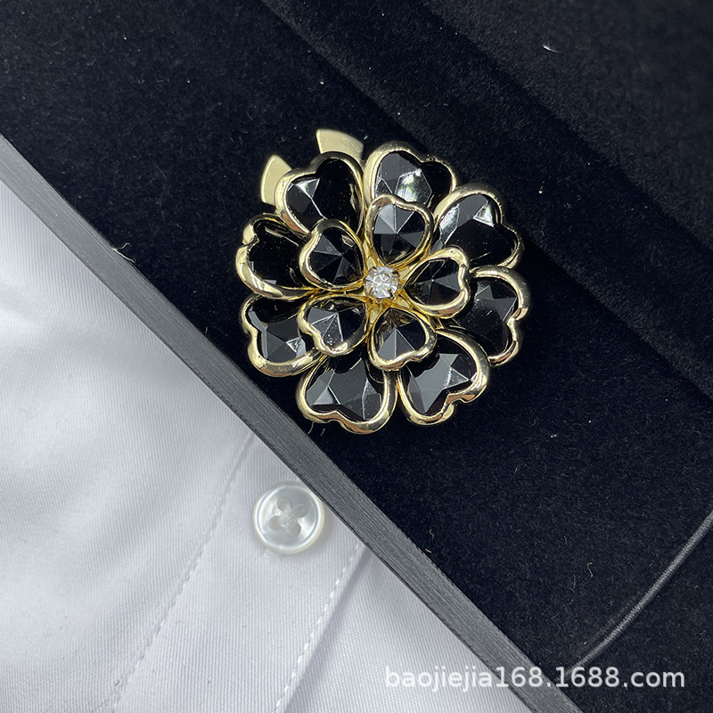 6.6cm ダブルCブローチ、小香風オリジナルブローチ、高級感、高級、精巧、ファッショナブルな椿の花ブローチ