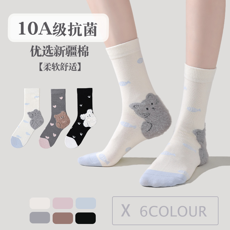 【フリース製小型暖かいソックス】女性用漫画ソックス3足セット、秋冬ミッドカーフソックス、コーマ綿、かわいい、和風、多用途、トレンディ