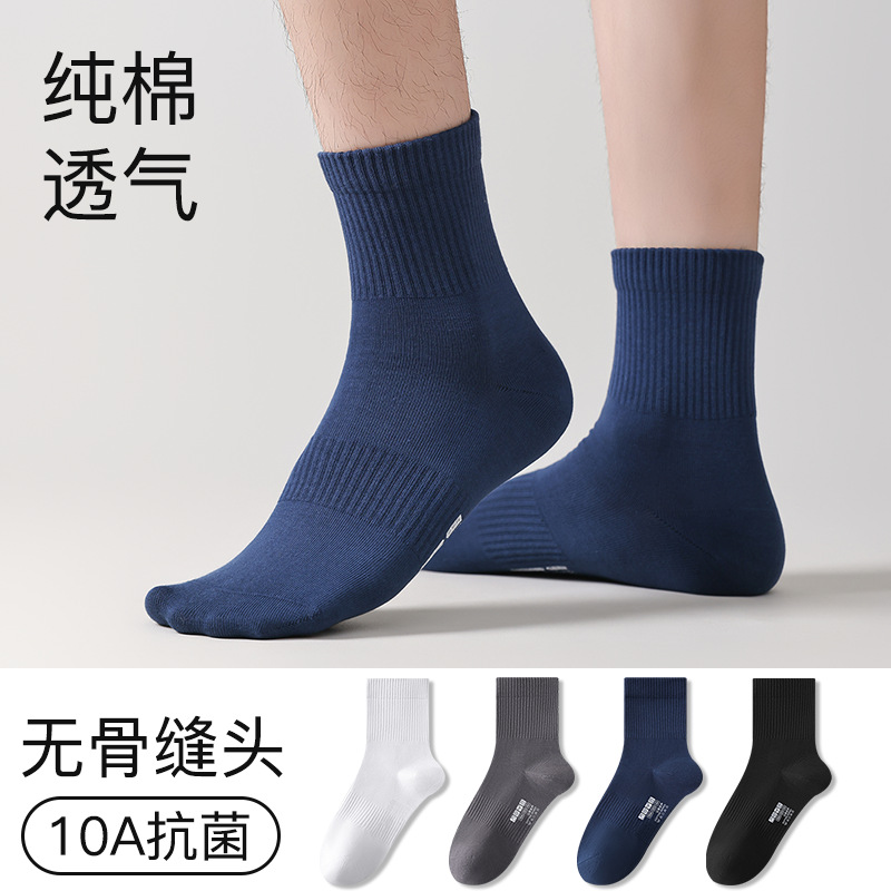 【中筒橡筋男】10a抗菌吸汗透气运动中筒袜袜子百搭商务批发纯色