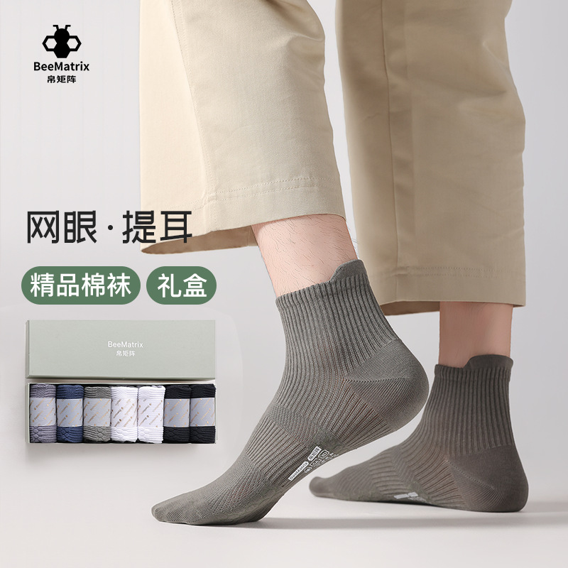 【7双装-提耳礼盒袜】无骨棉袜低筒提耳男袜5a抗菌高端礼盒袜