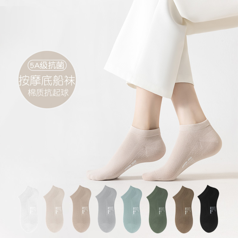 春夏の新型靴下の女性の靴下の網の目の通気性の浅い口の女性の靴下はボールの純色のマッサージの底の靴下の女性の薄いタイプに抵抗します。