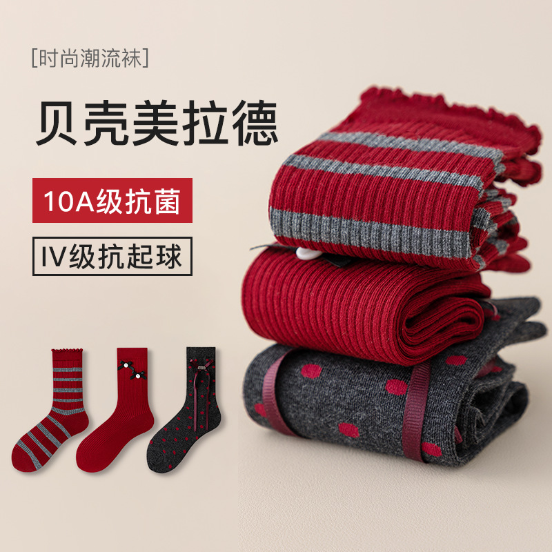 [シェルメイラード] レディースソックス、ミッドカーフソックス、コットンソックス、ネットセレブ秋冬スタイル、女性用ソックス3足組