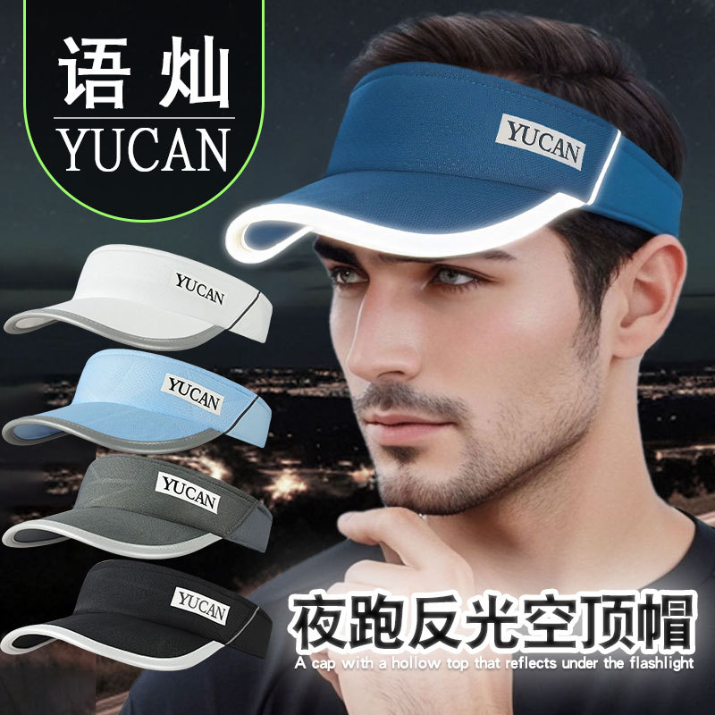Yucan 通気性と速乾性のランニング中空帽子メンズ吸汗性日焼け止めサンシェードマラソンクロスカントリーナイトランニング反射スポーツ帽子