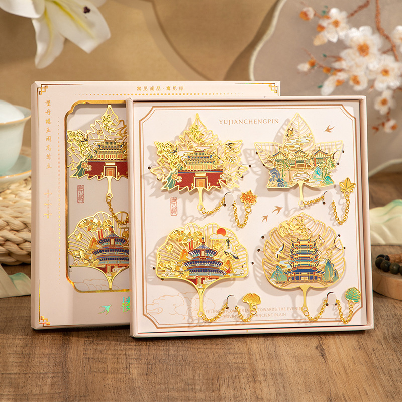 楼閣雅韻シリーズ 箱入りしおり 精緻な古典的な中国風 教師の日 クリエイティブで美しい文化的で創造的なしおりギフトボックス