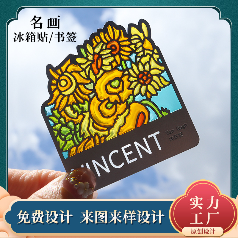 名画透光金属ブックマーク文創小プレゼント教師卒業透明ゴッホヒマワリ冷蔵庫貼りカスタマイズ