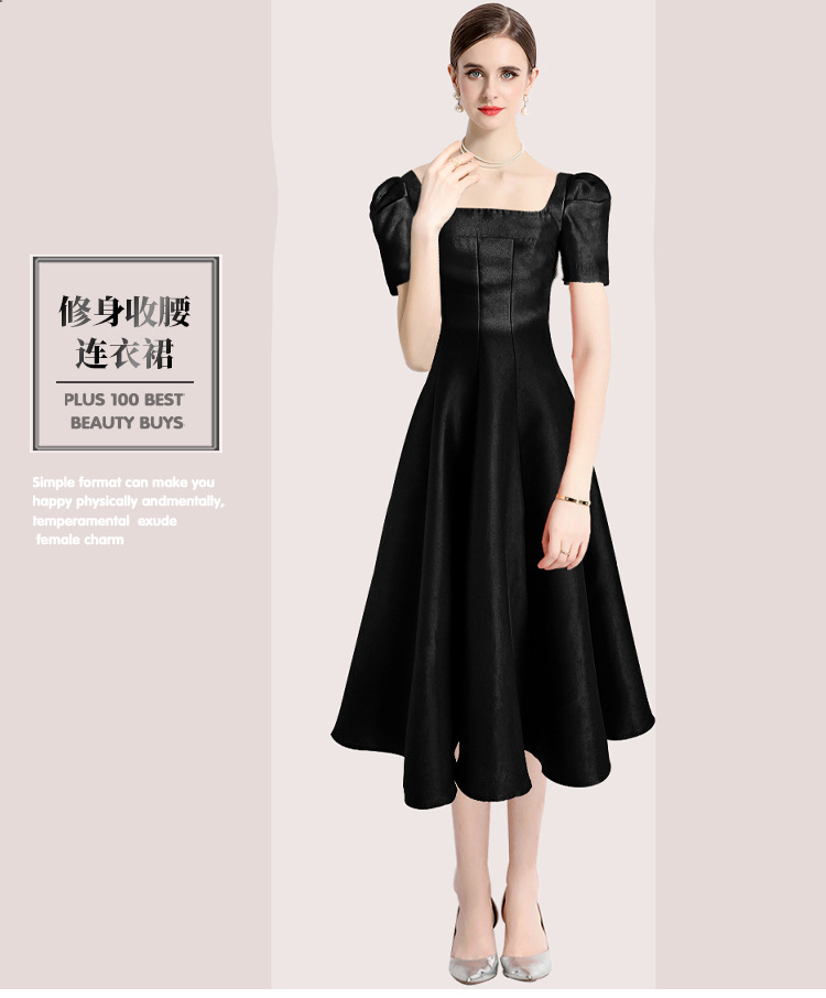 フランス式のヘボン風の気質の純色は腰を収めて大きい裾の方襟のドレスのワンピースを修理します。