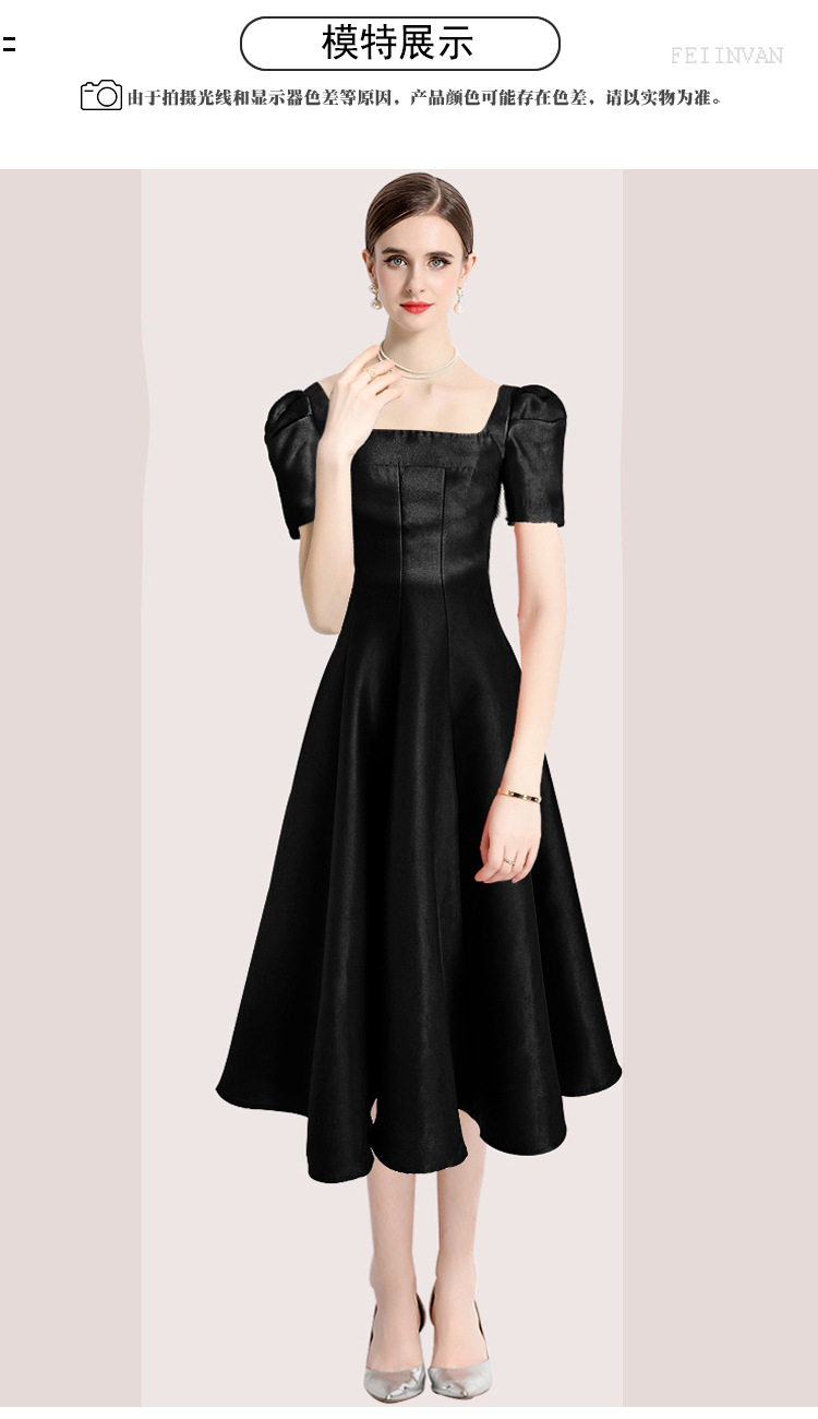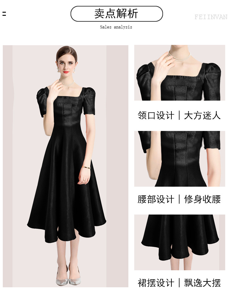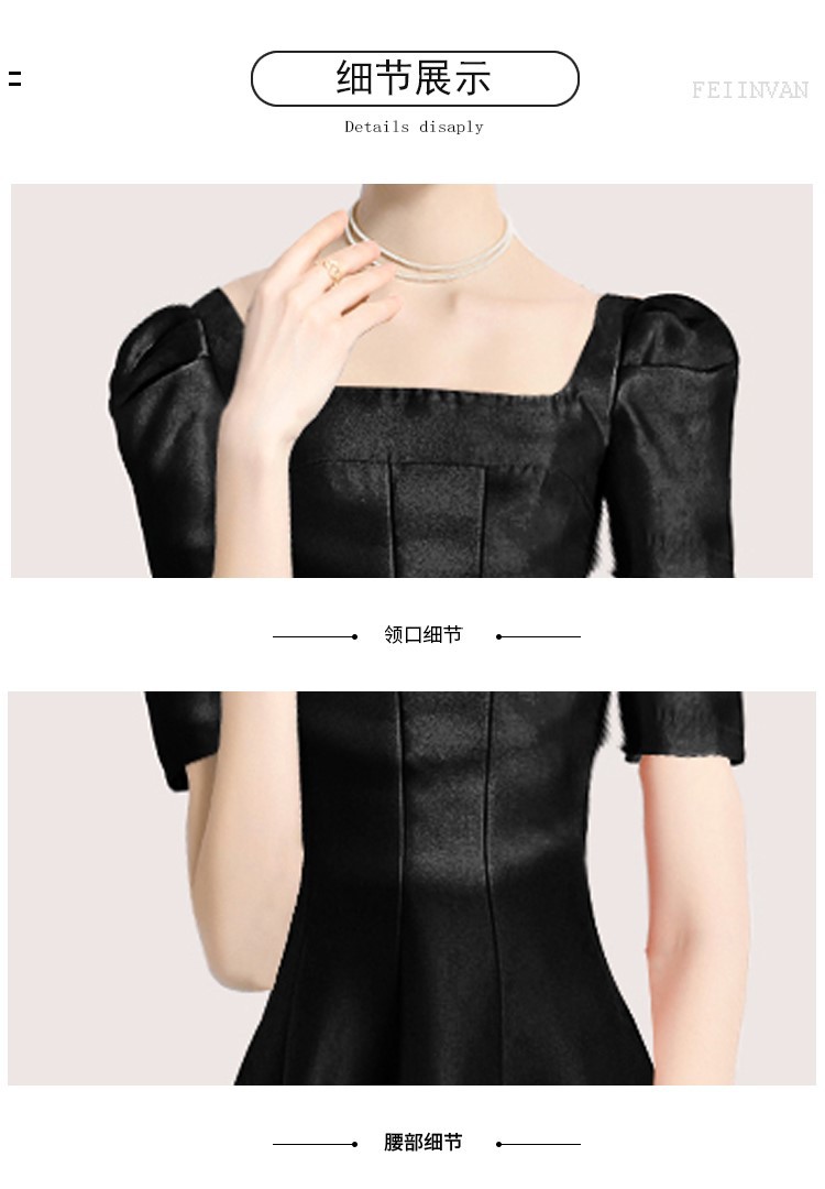 フランス式のヘボン風の大衆の気質のレトロな大きい裾の垂れ下がった感じの方の襟の半袖の黒色のドレスの蓬蓬のスカートのワンピース