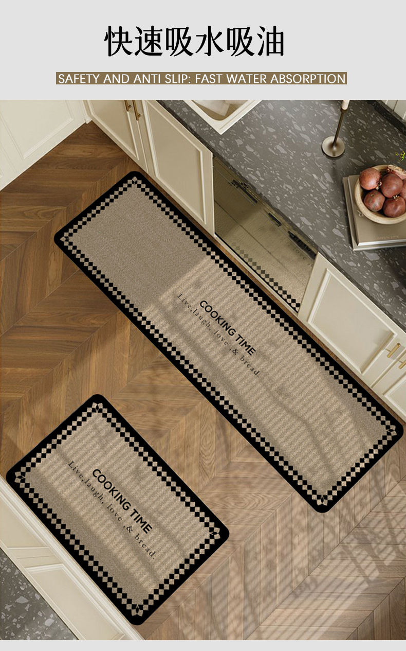 モダンでシンプルなキッチンフロアマット、吸水性、吸油性、汚れ防止フロアマット、家庭用滑り止め、お手入れが簡単な珪藻土フロアマット