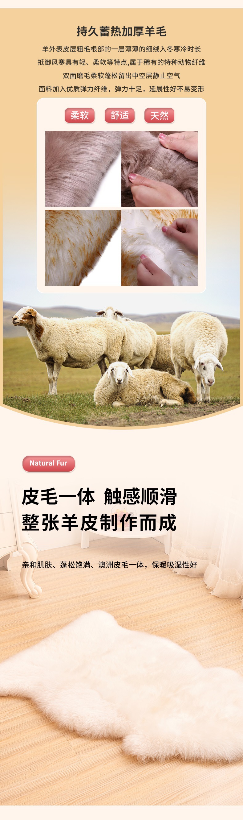 外贸皮毛一体服装内胆皮草整张羊毛皮料澳洲绵羊皮厂家批发