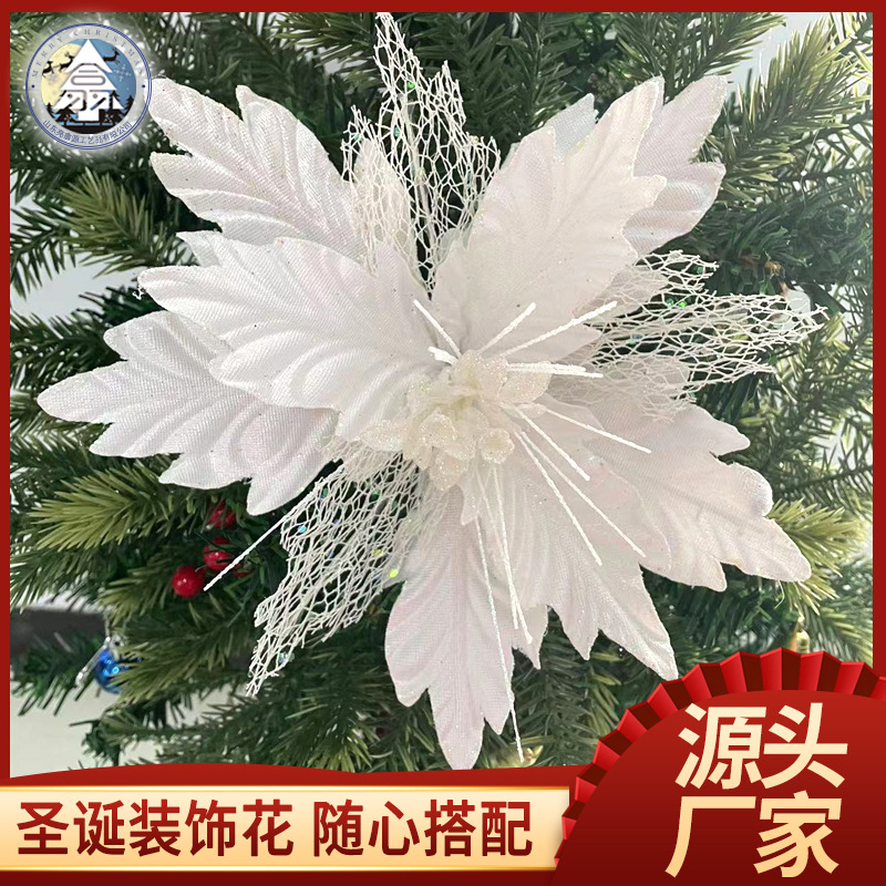 金粉のクリスマスの花のクリスマスツリーの装飾品のクリスマスの花輪の置物のクリスマスの装飾の花の頭の偽の花の卸売り