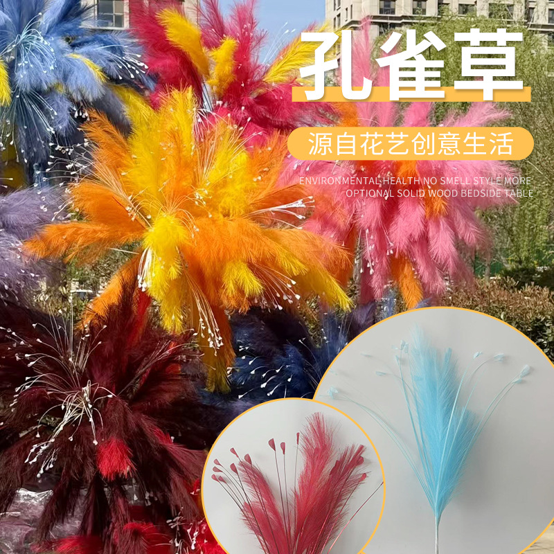 シミュレーション花ピーコックウェディング装飾道具多彩なグラデーション鳳尾葦草シミュレーション花火シミュレーション花卸売り