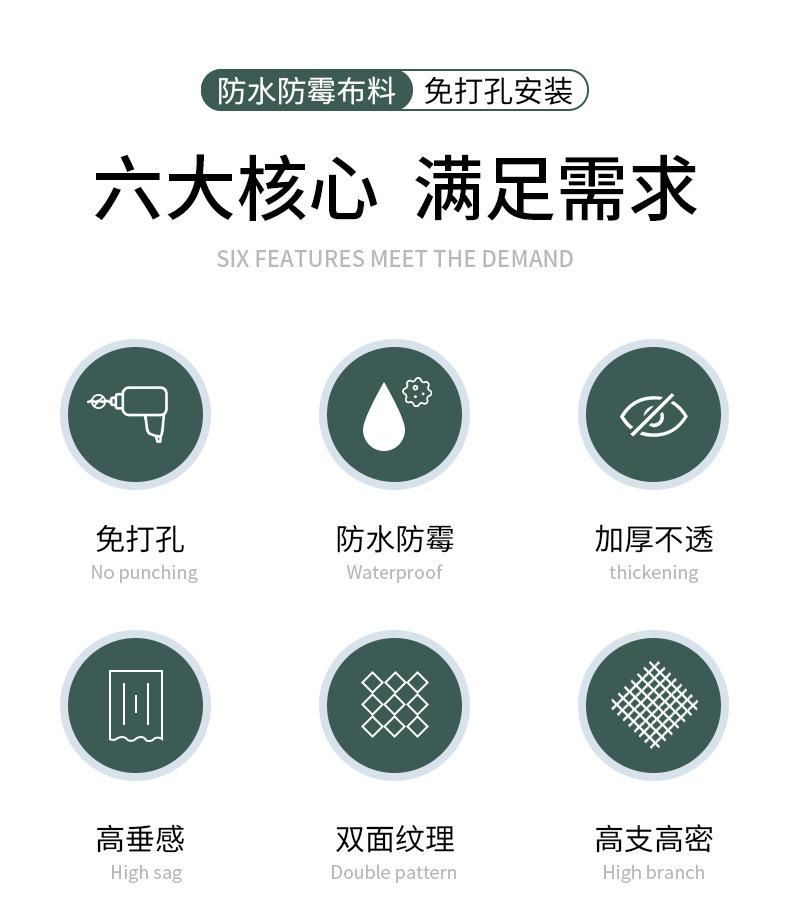 シンプルな小清新風シリーズ家庭用シャワーカーテン防水厚手トイレポリエステルシャワーカーテン