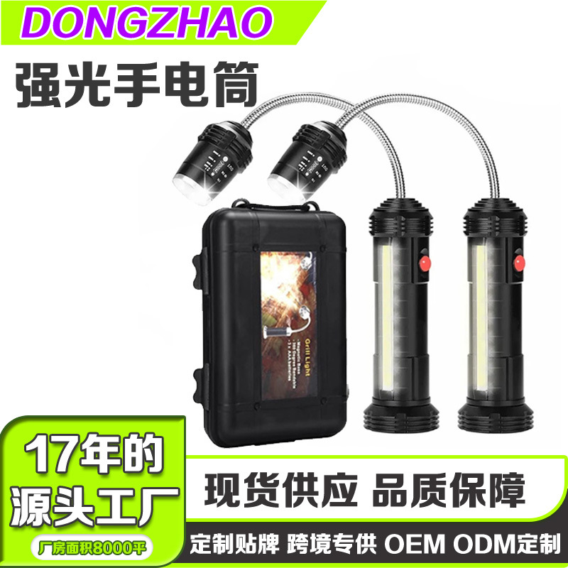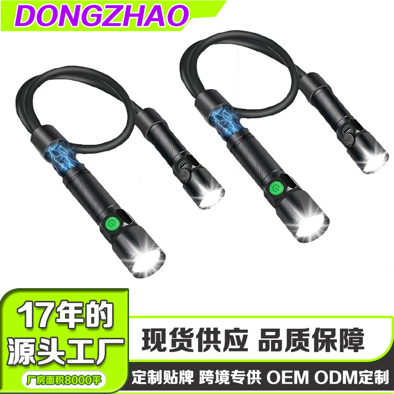 跨境新款LED烧烤灯带磁性底座可充电变焦手电筒可拆卸颈部工作灯