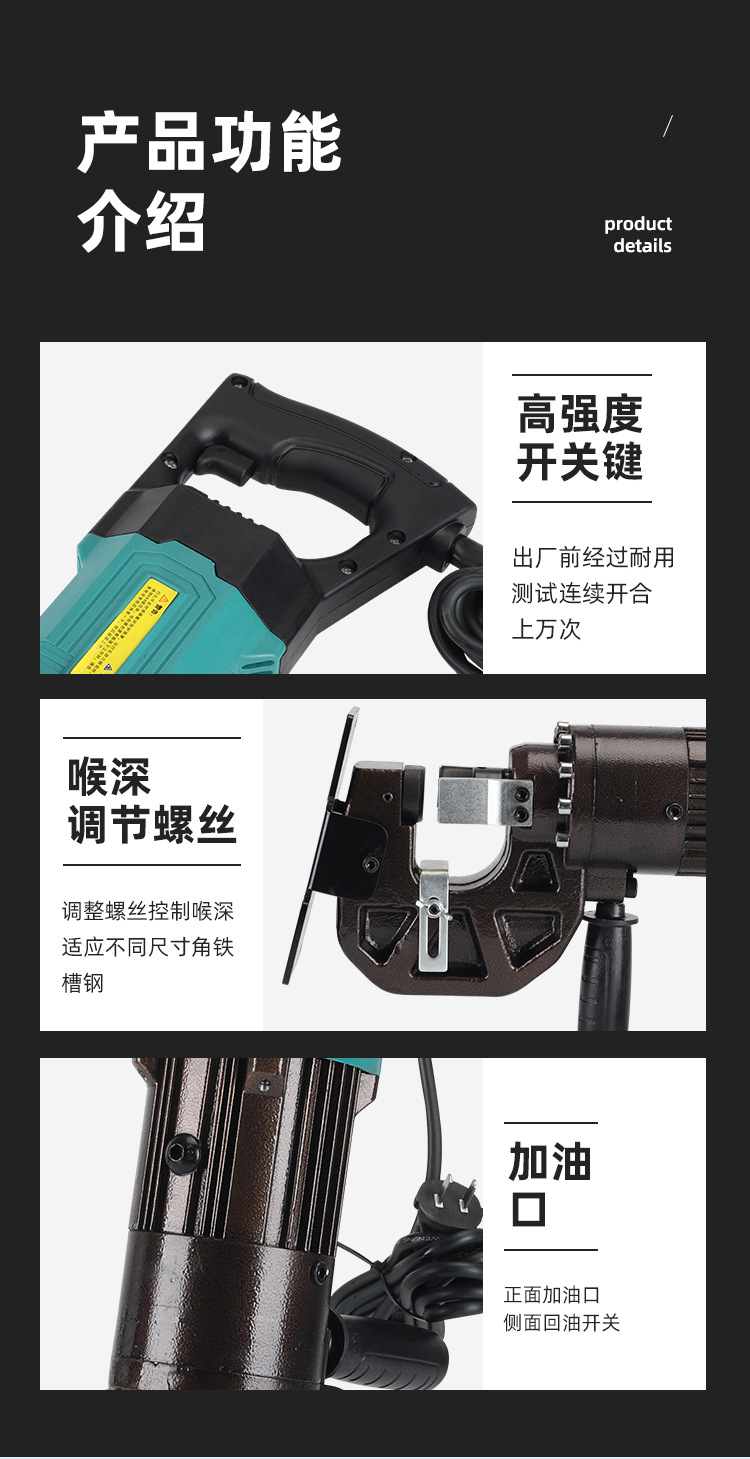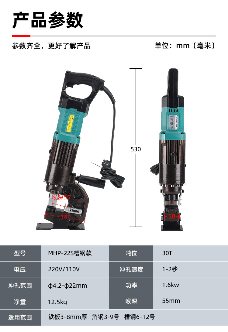 電動油圧パンチングマシン手持ち式MHP-20小型乾掛角鋼パンチングマシン溝鋼角鉄穴あけマシン