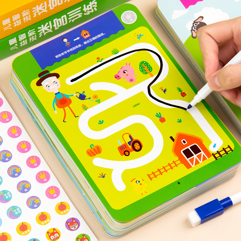 迷宮児童集中力トレーニングカード3-6歳8走迷宮本赤ちゃんゲーム論理思考知育玩具