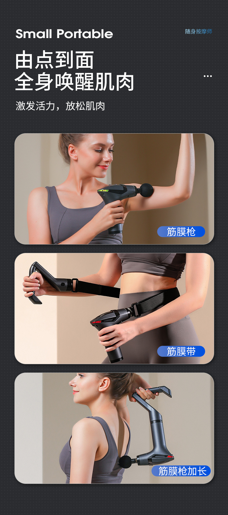 可拆卸手持长柄弯头筋膜枪家用多功能肌肉放松按摩器智能按摩枪