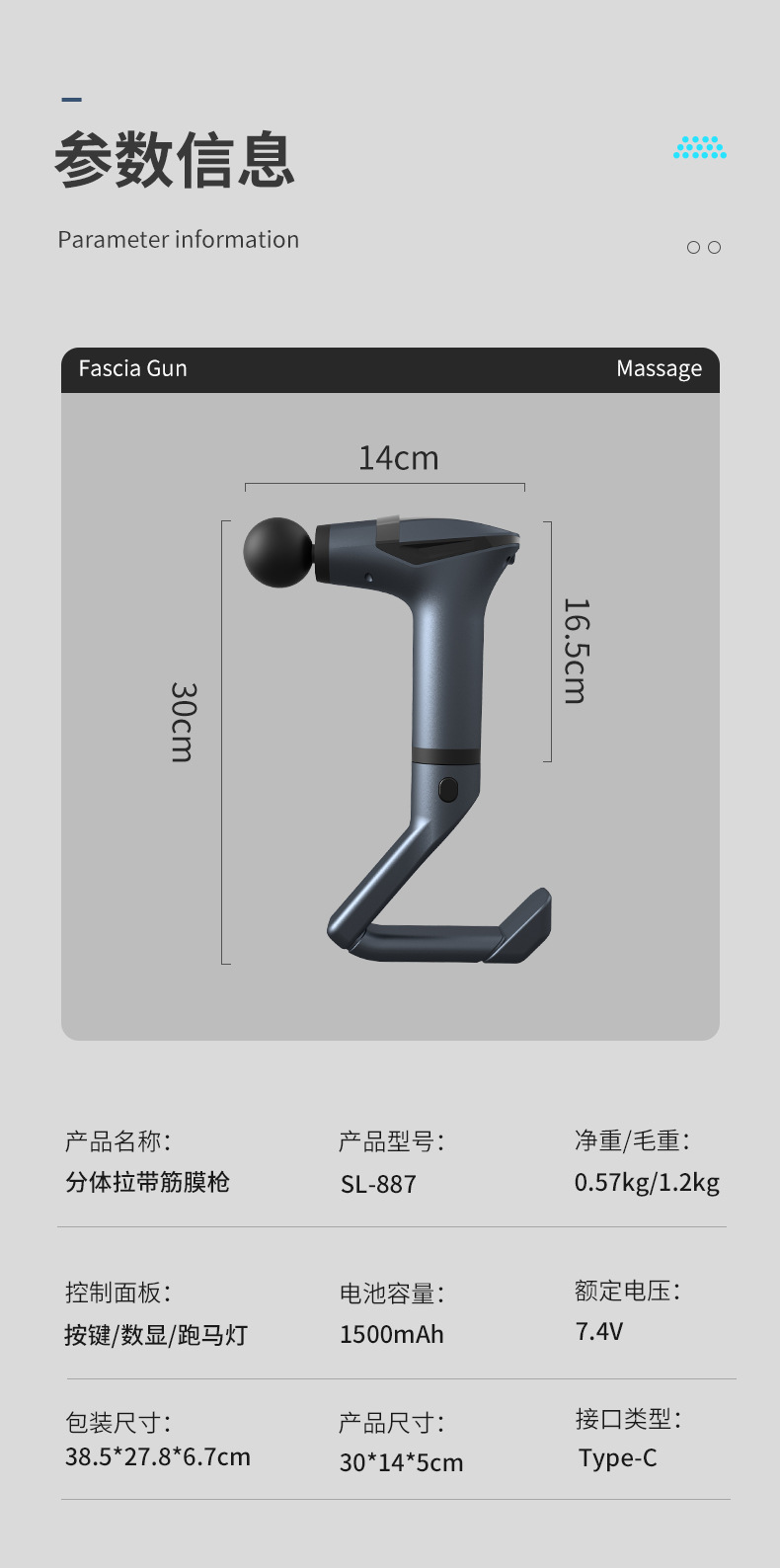跨境多功能可拆卸加长手柄按摩枪按摩器分体拉伸带筋膜枪伸缩静音