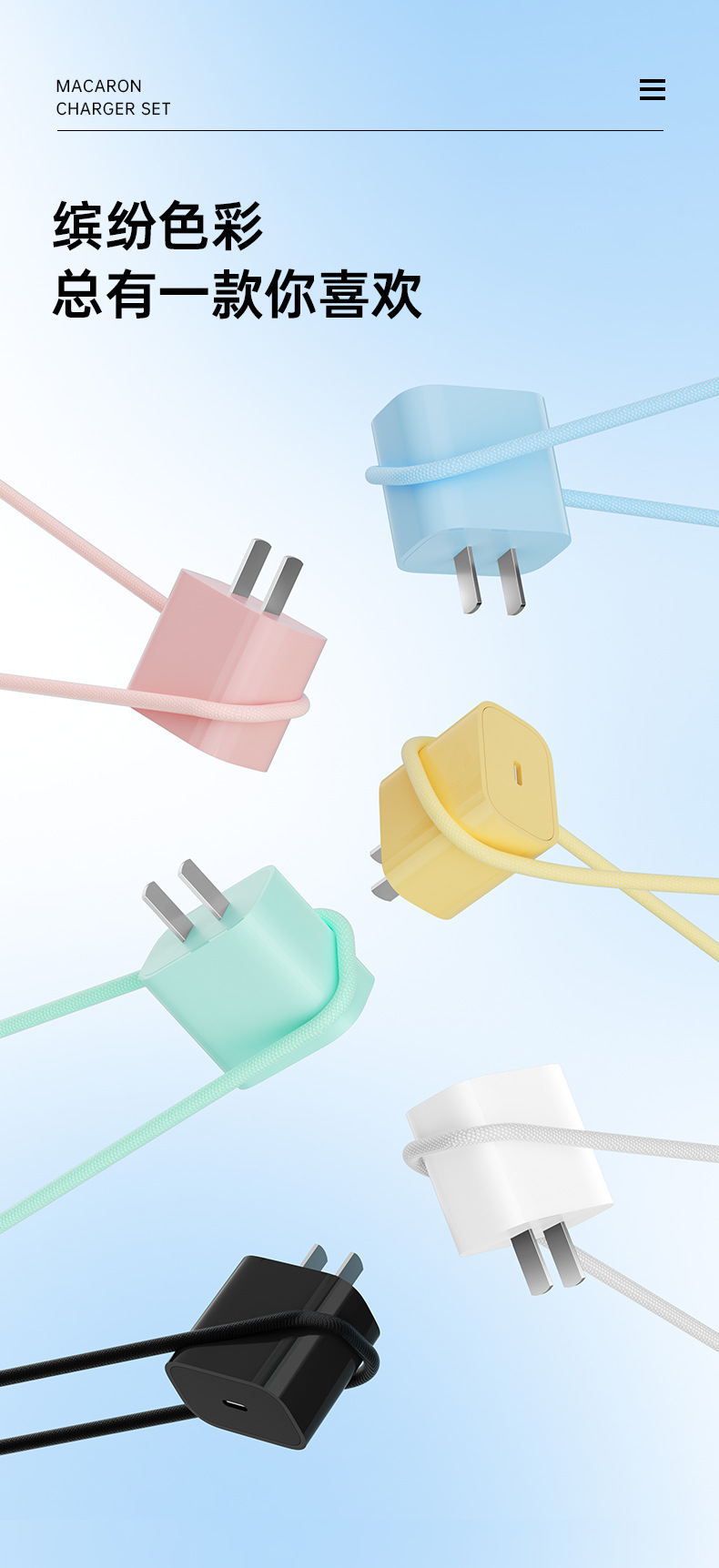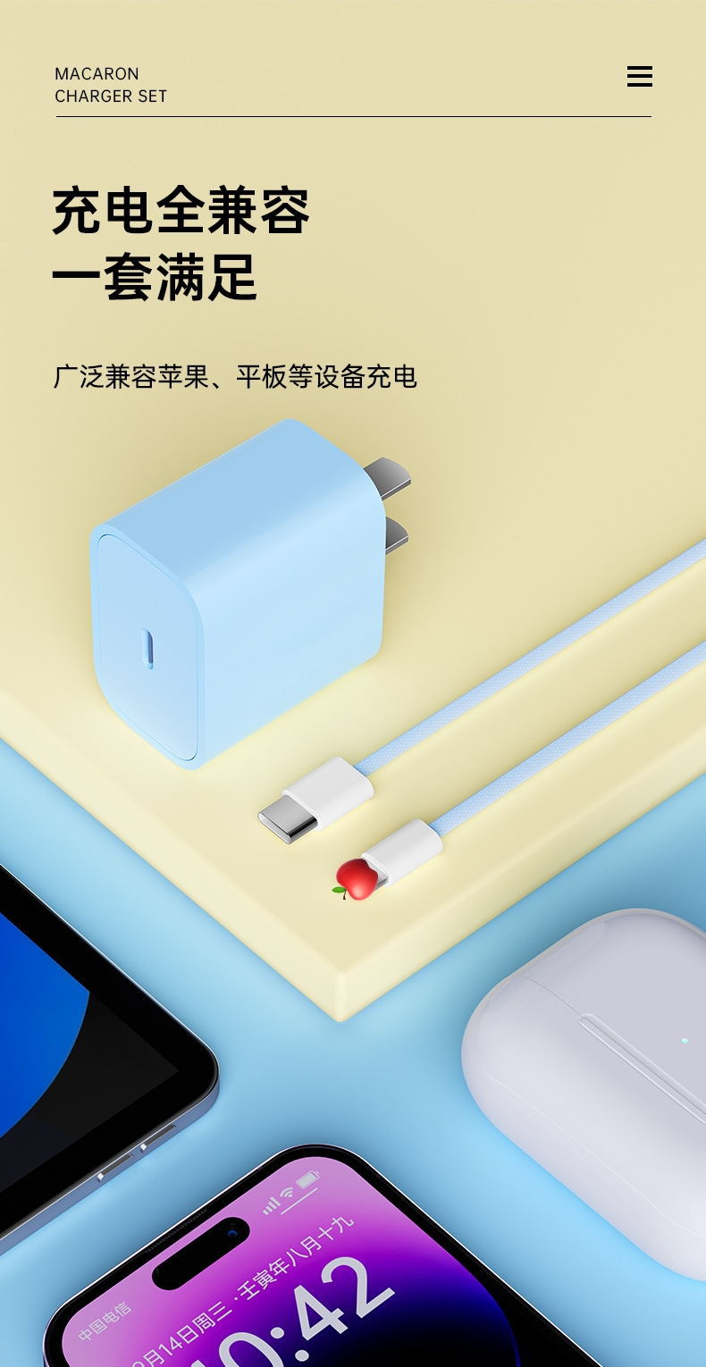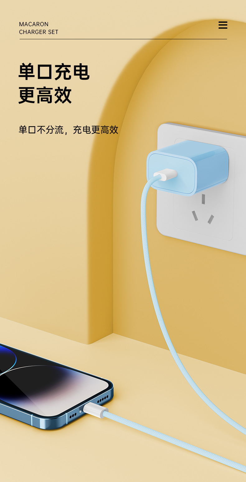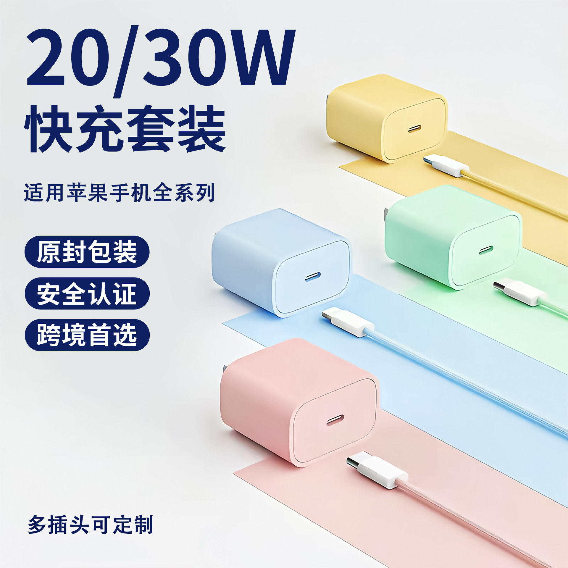跨境马卡龙pd20w美规35w 适用iPhone炫彩快充头编织线苹果充电器