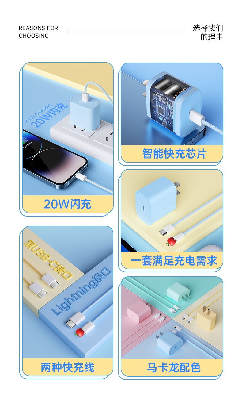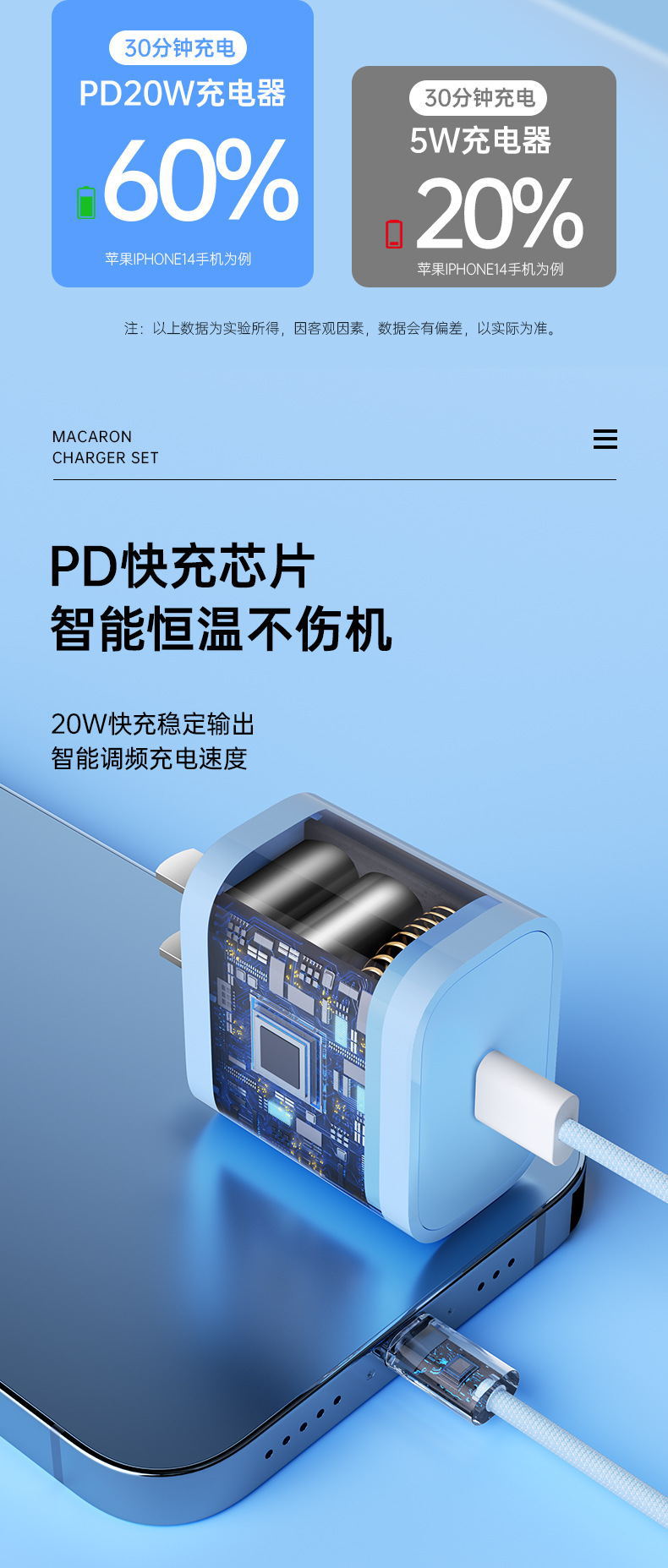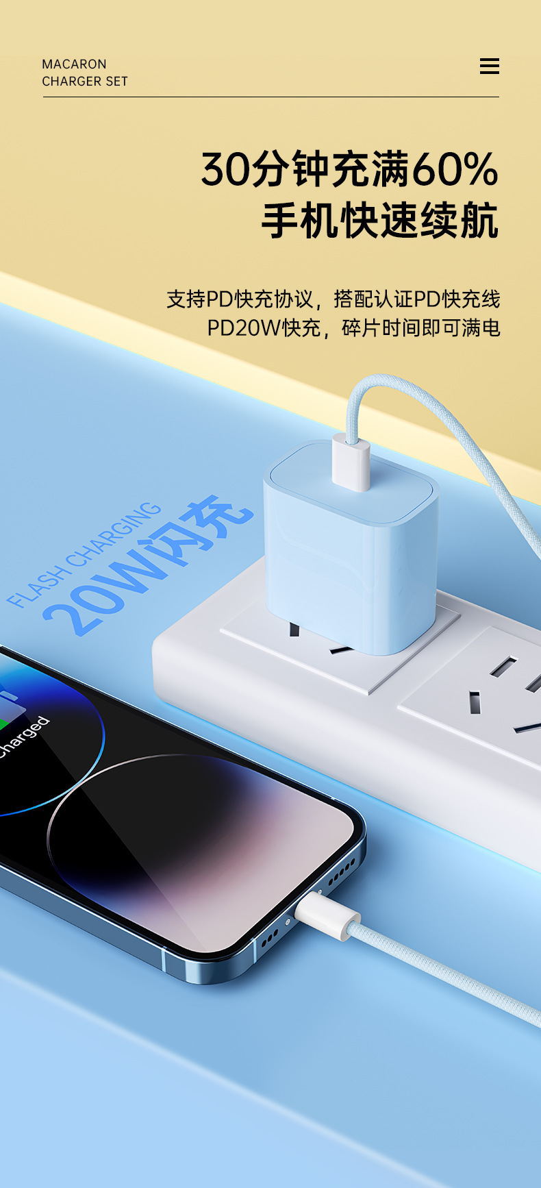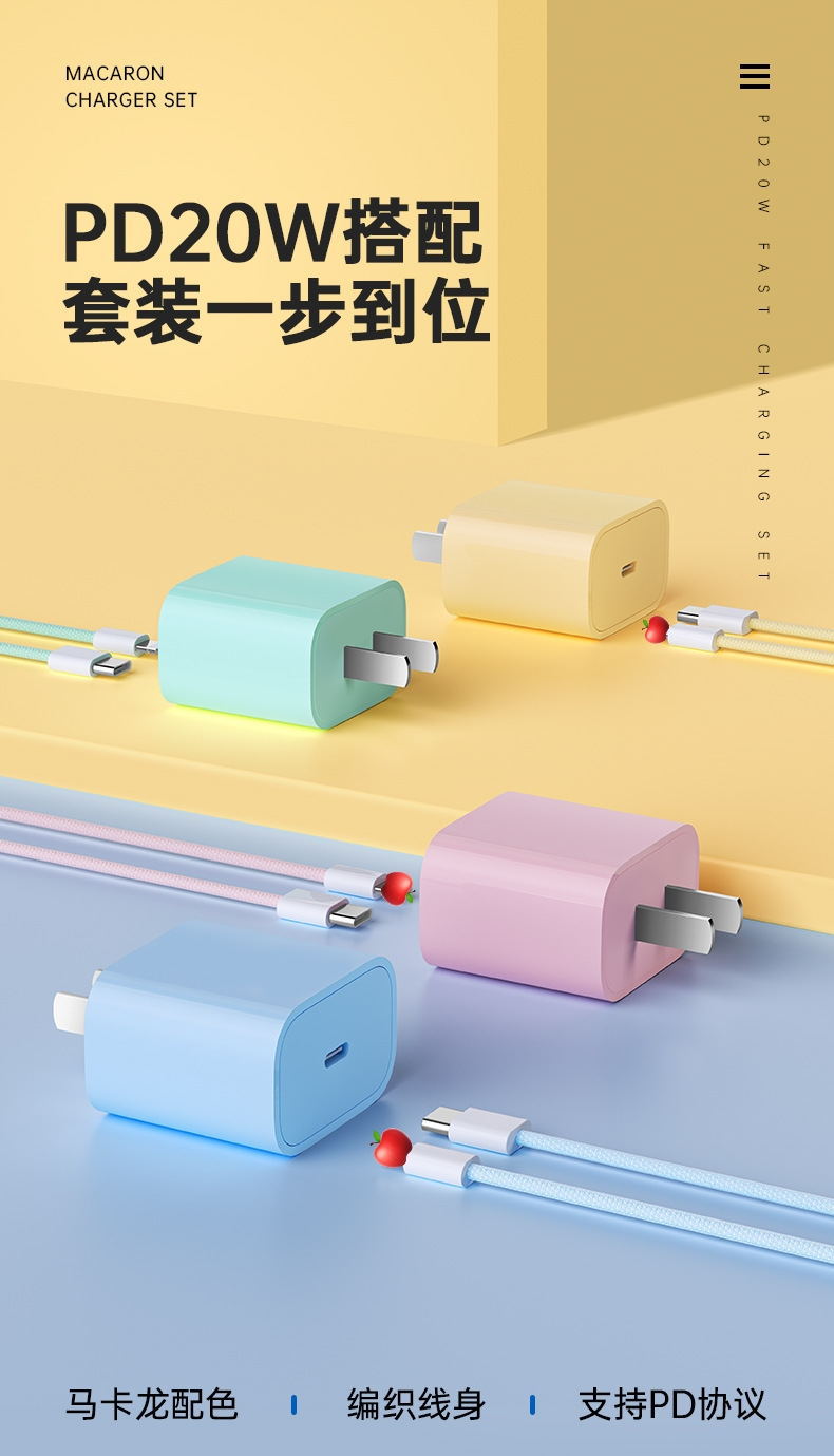 跨境马卡龙pd20w美规35w 适用iPhone炫彩快充头编织线苹果充电器