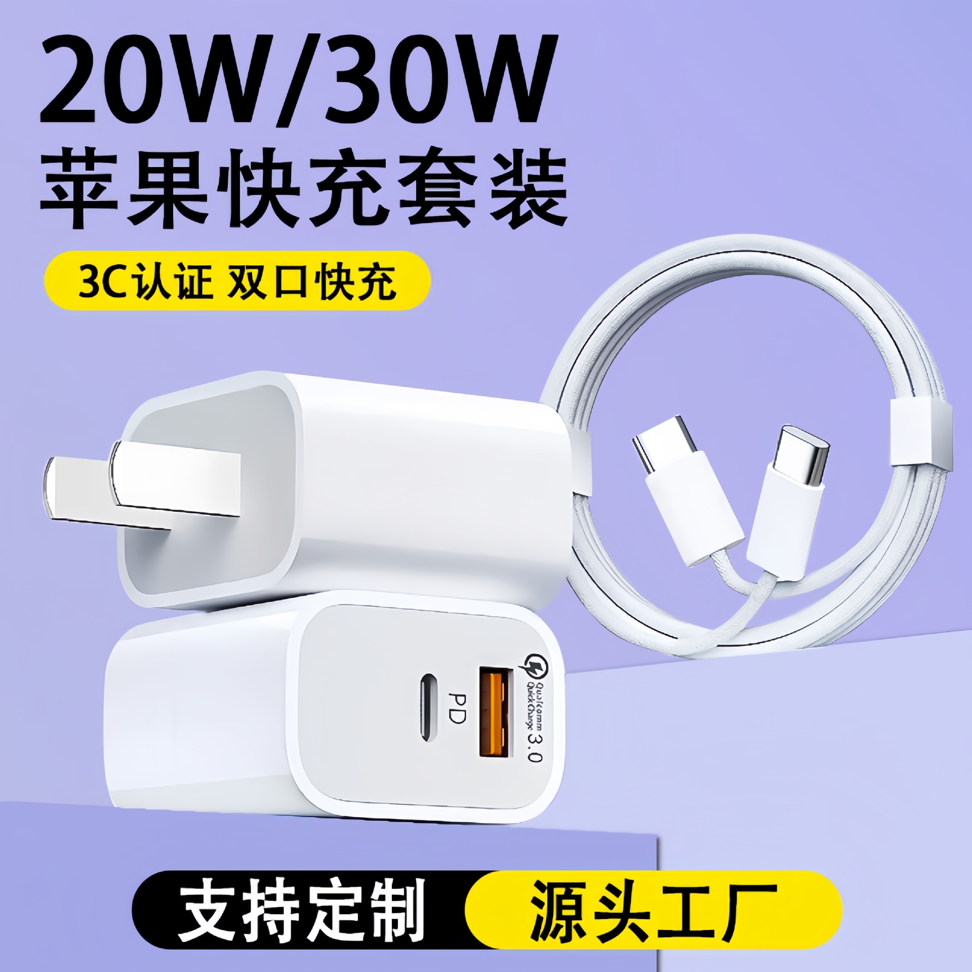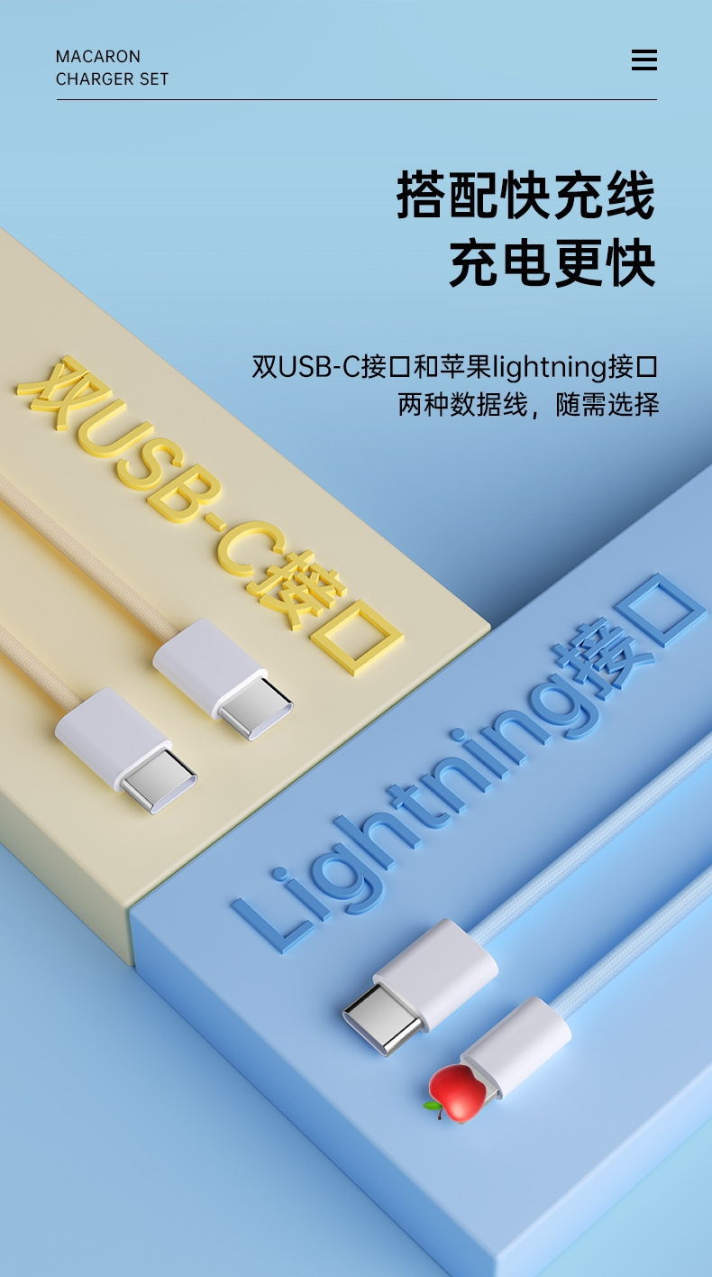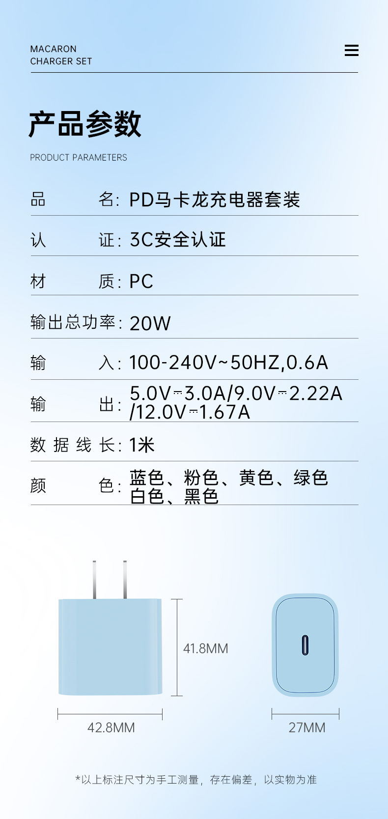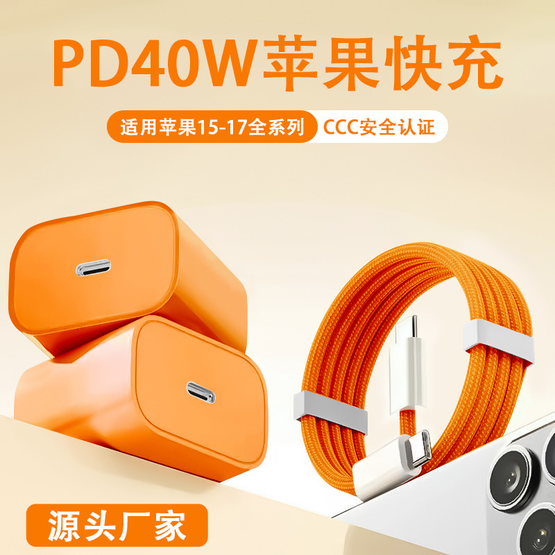 跨境马卡龙pd20w美规35w 适用iPhone炫彩快充头编织线苹果充电器
