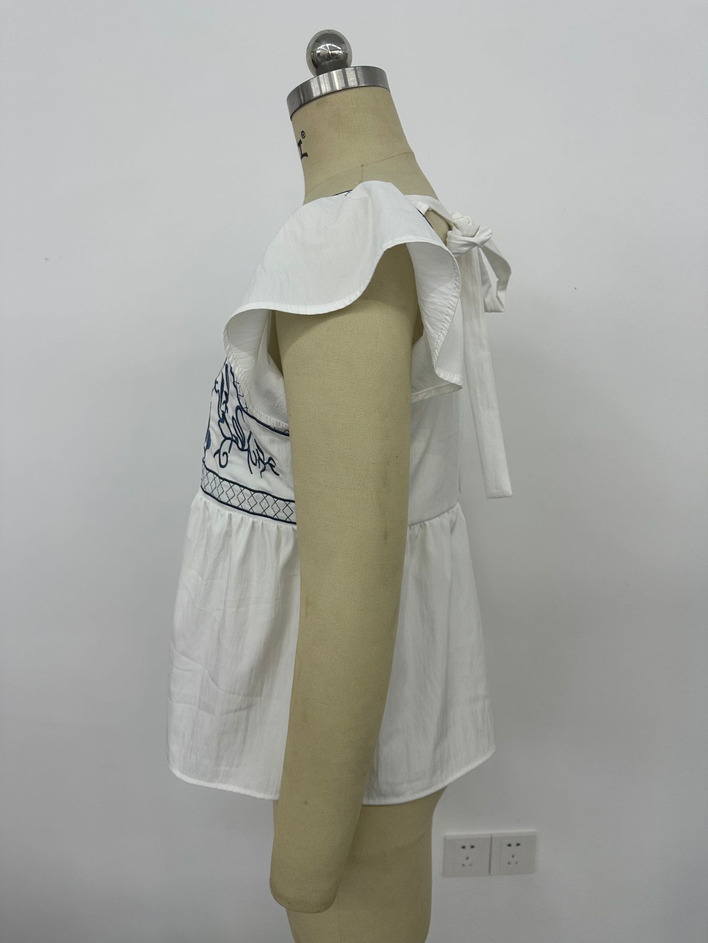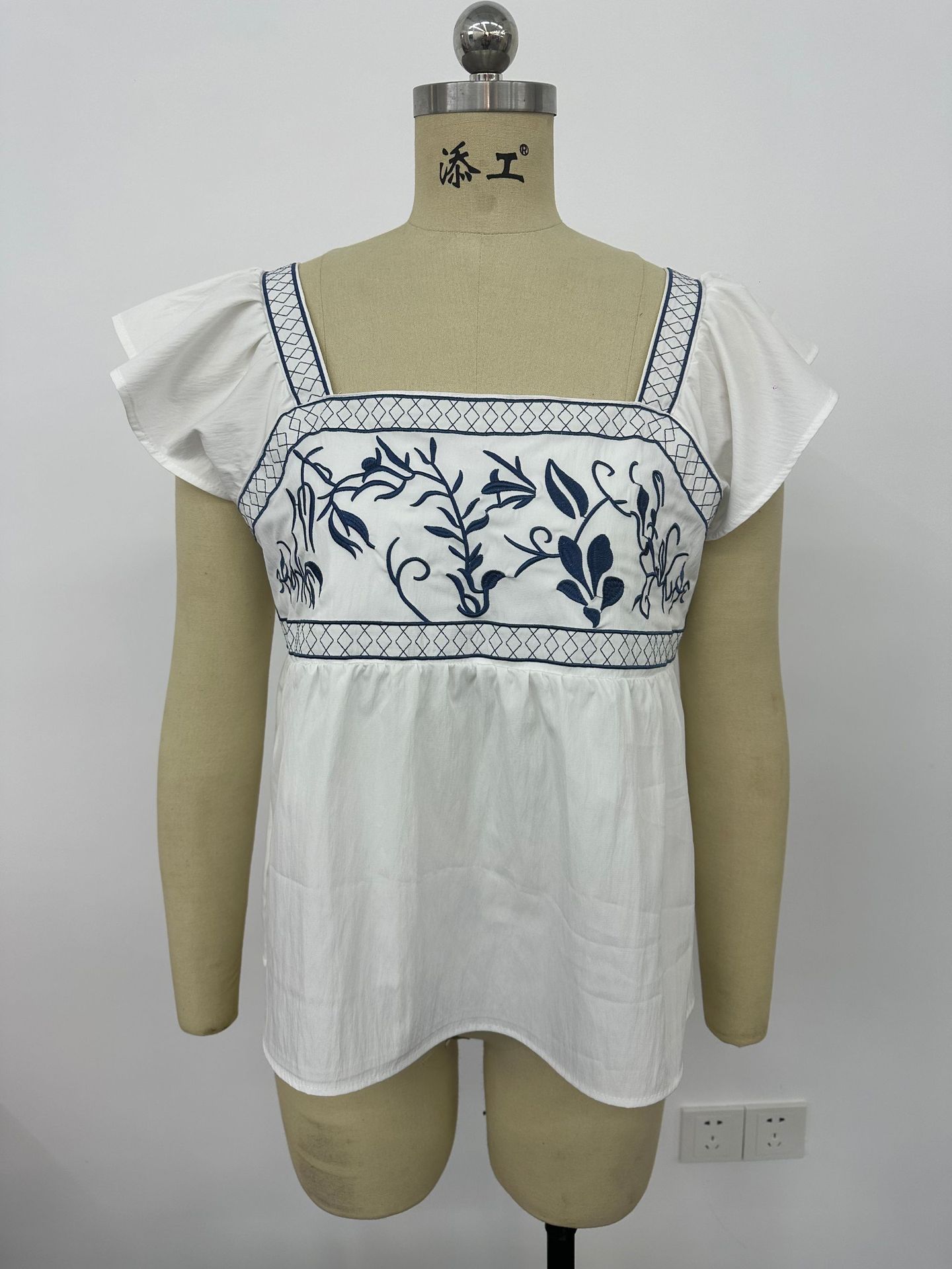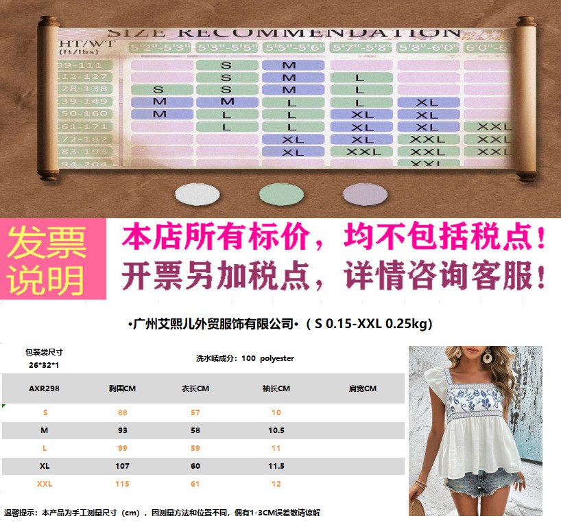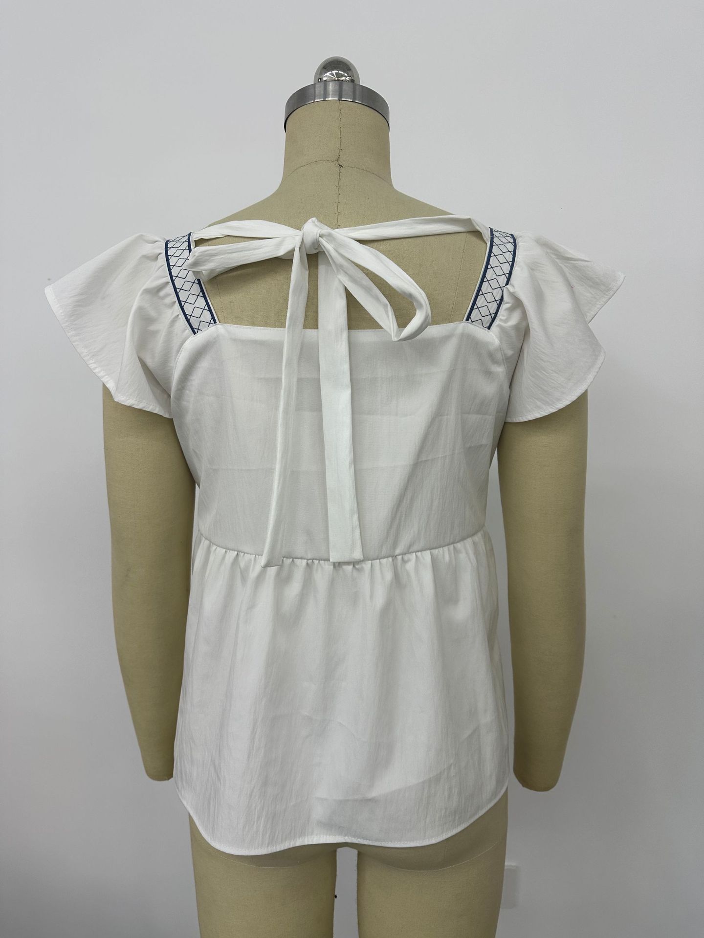 2026年欧米越境アマゾン婦人服夏新作刺繍入りレースアップスクエアネックフリル袖トップス