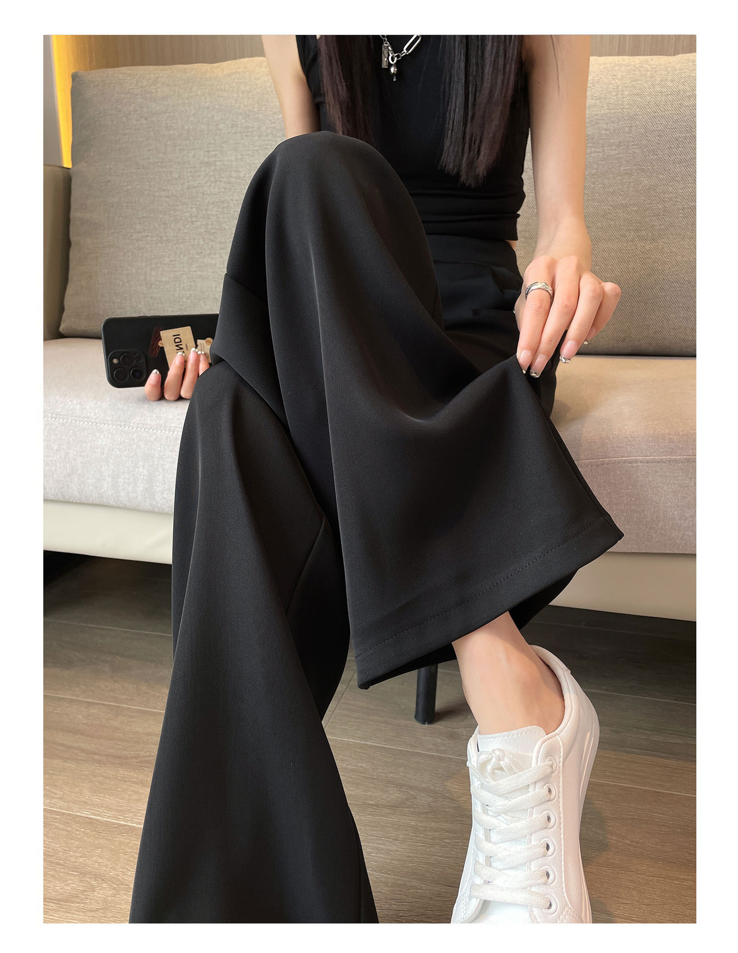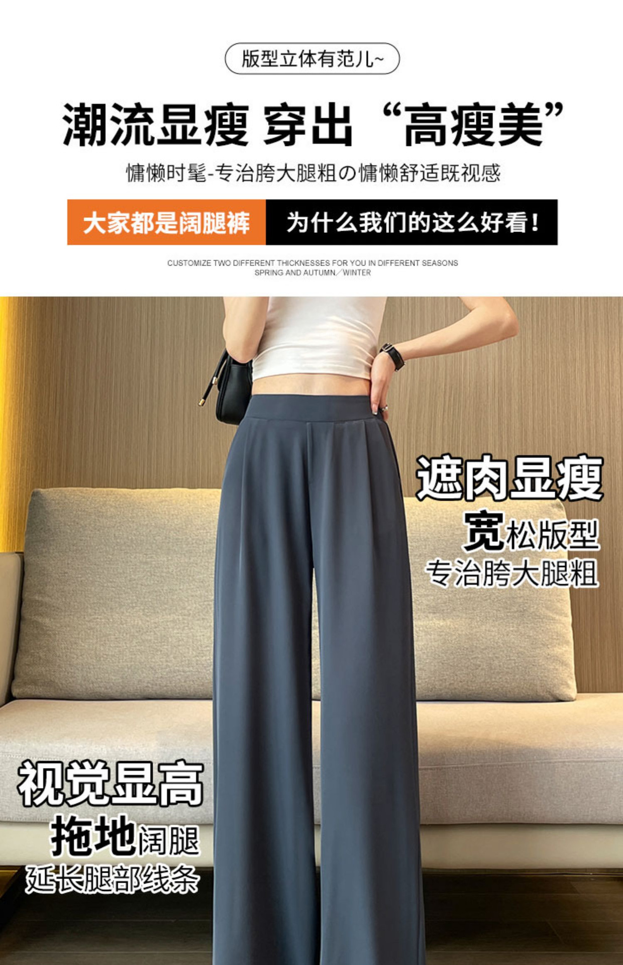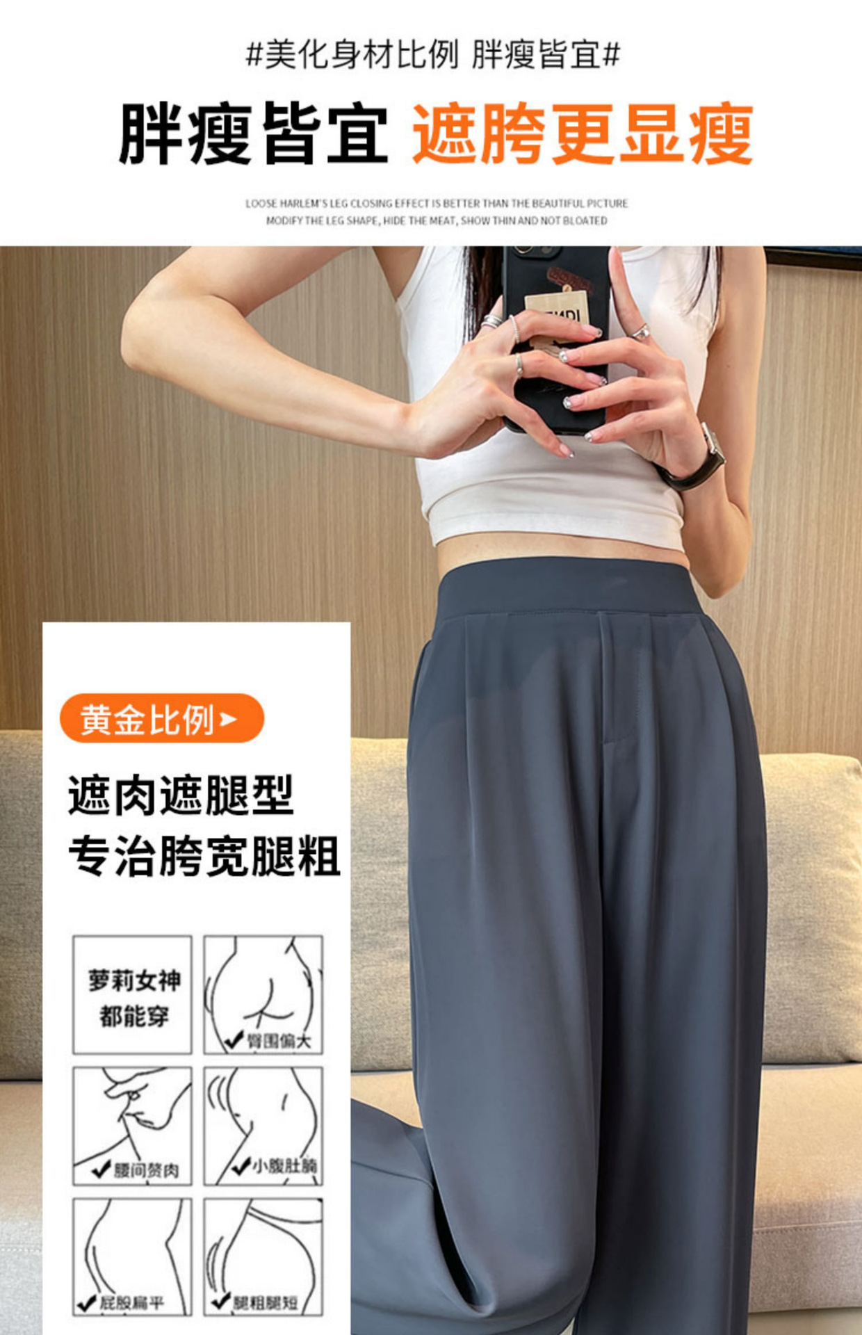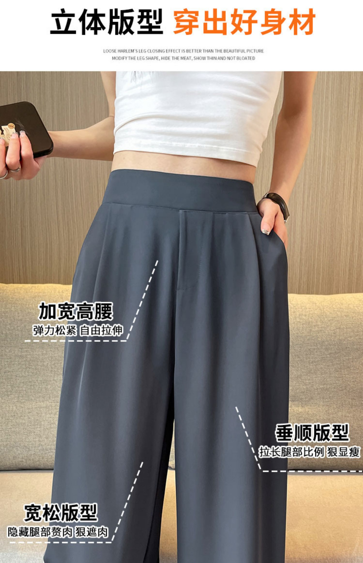 春の夏の新型の垂れ下がった感じの純色の大きいサイズはゆったりしていて、やせているスーツのズボンの韓国版のカジュアルな百合の広い足の9分のズボンの女性を現します。