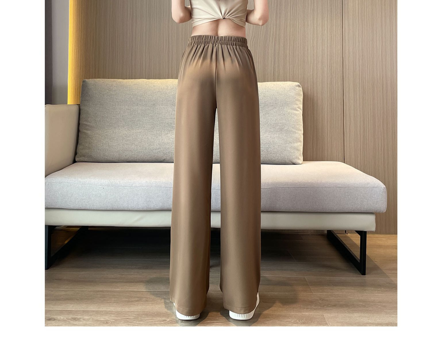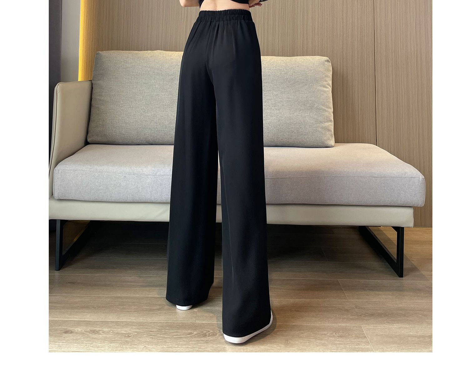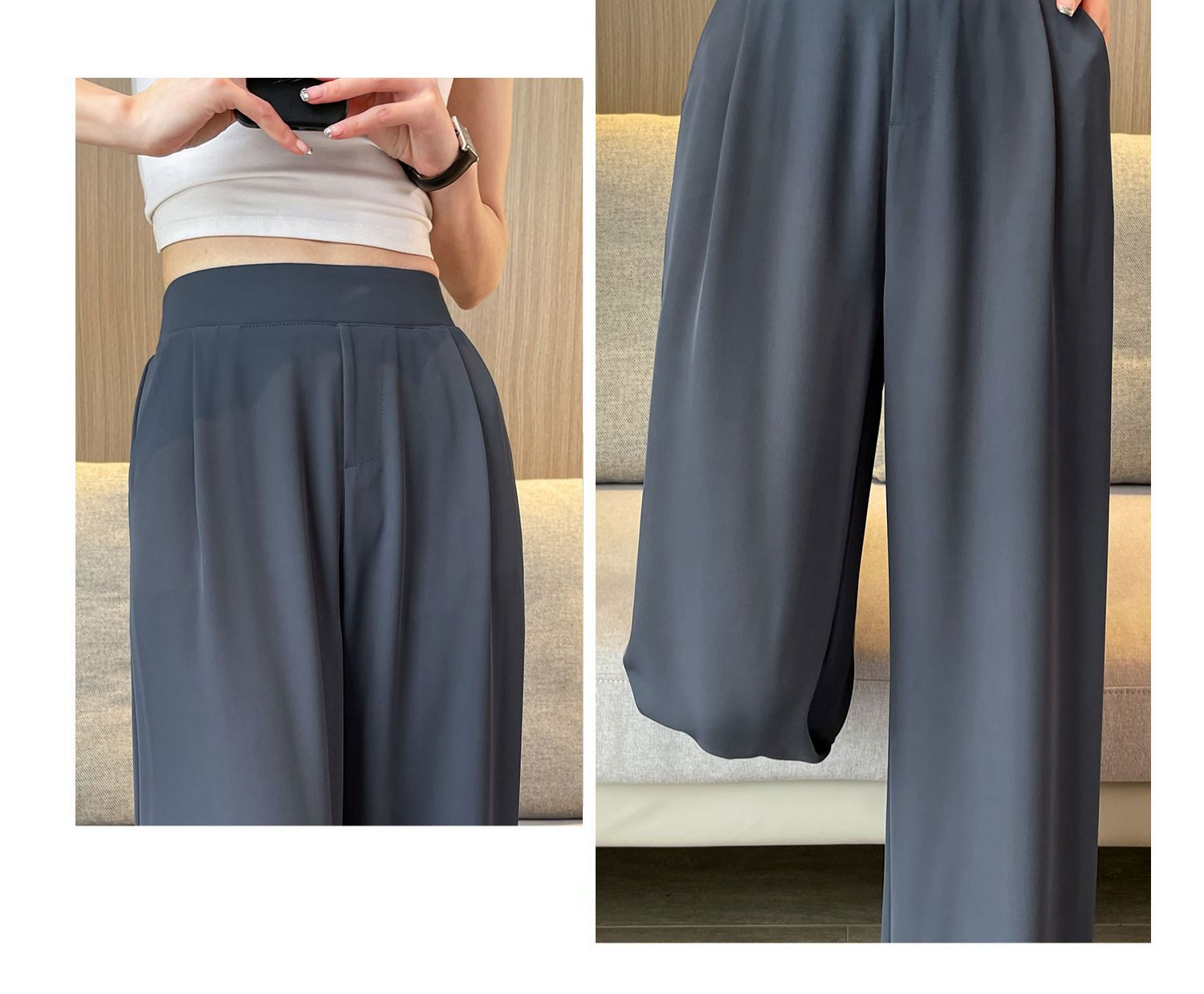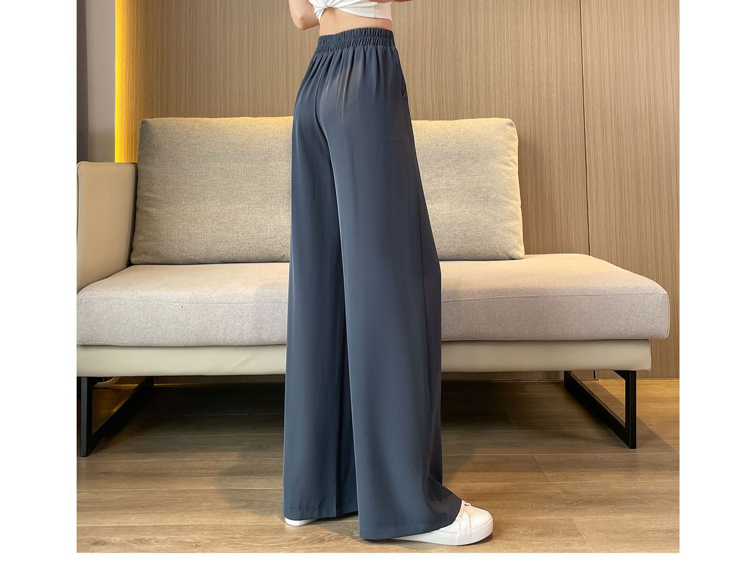春の夏の新型の垂れ下がった感じの純色の大きいサイズはゆったりしていて、やせているスーツのズボンの韓国版のカジュアルな百合の広い足の9分のズボンの女性を現します。