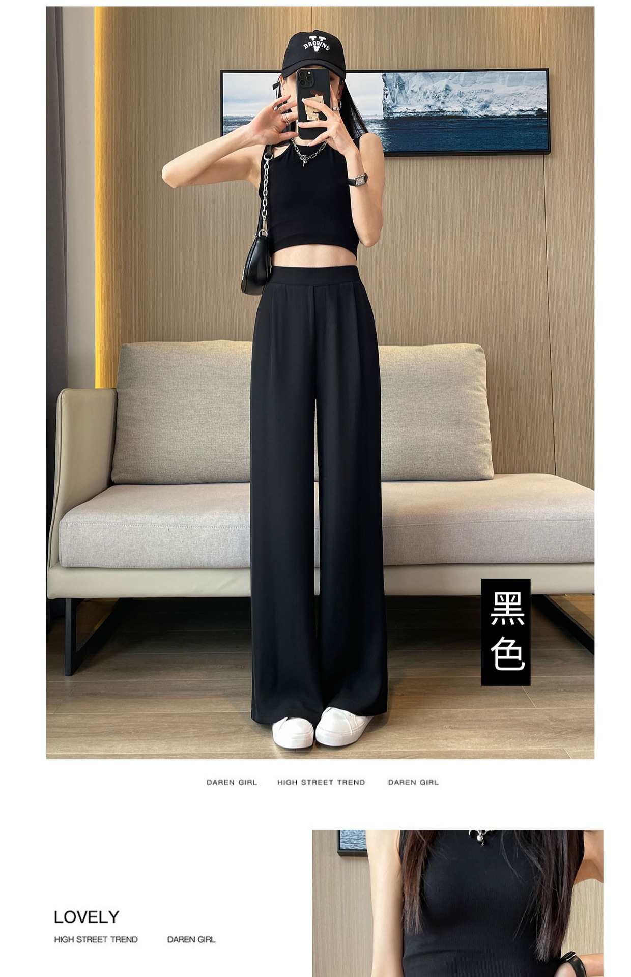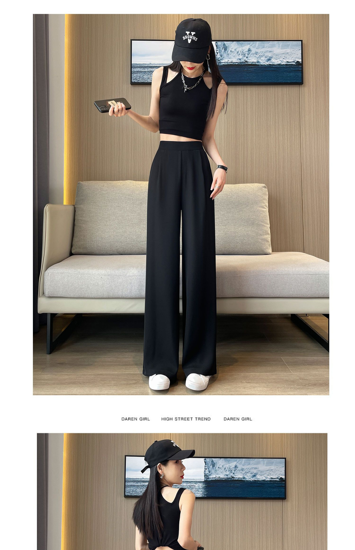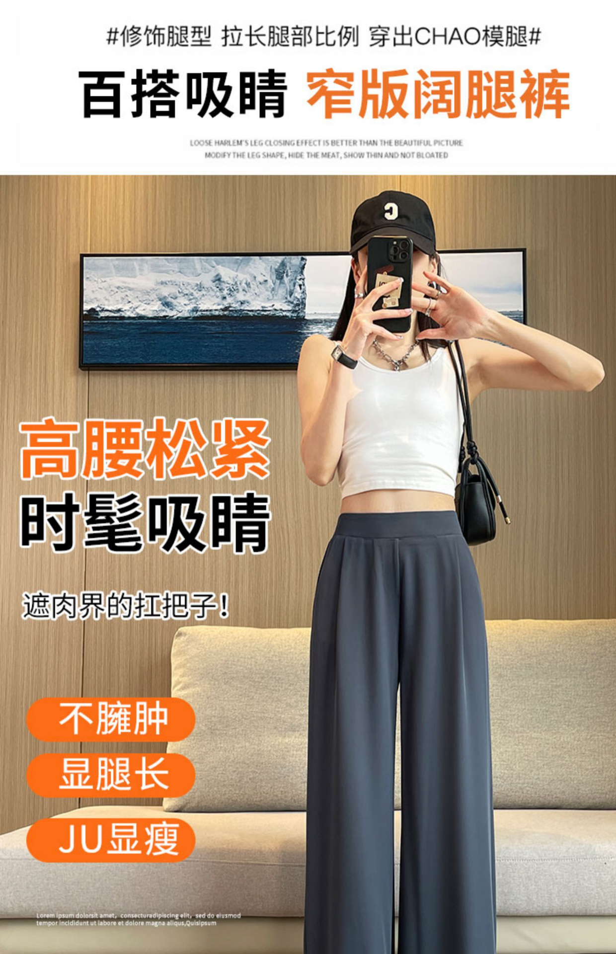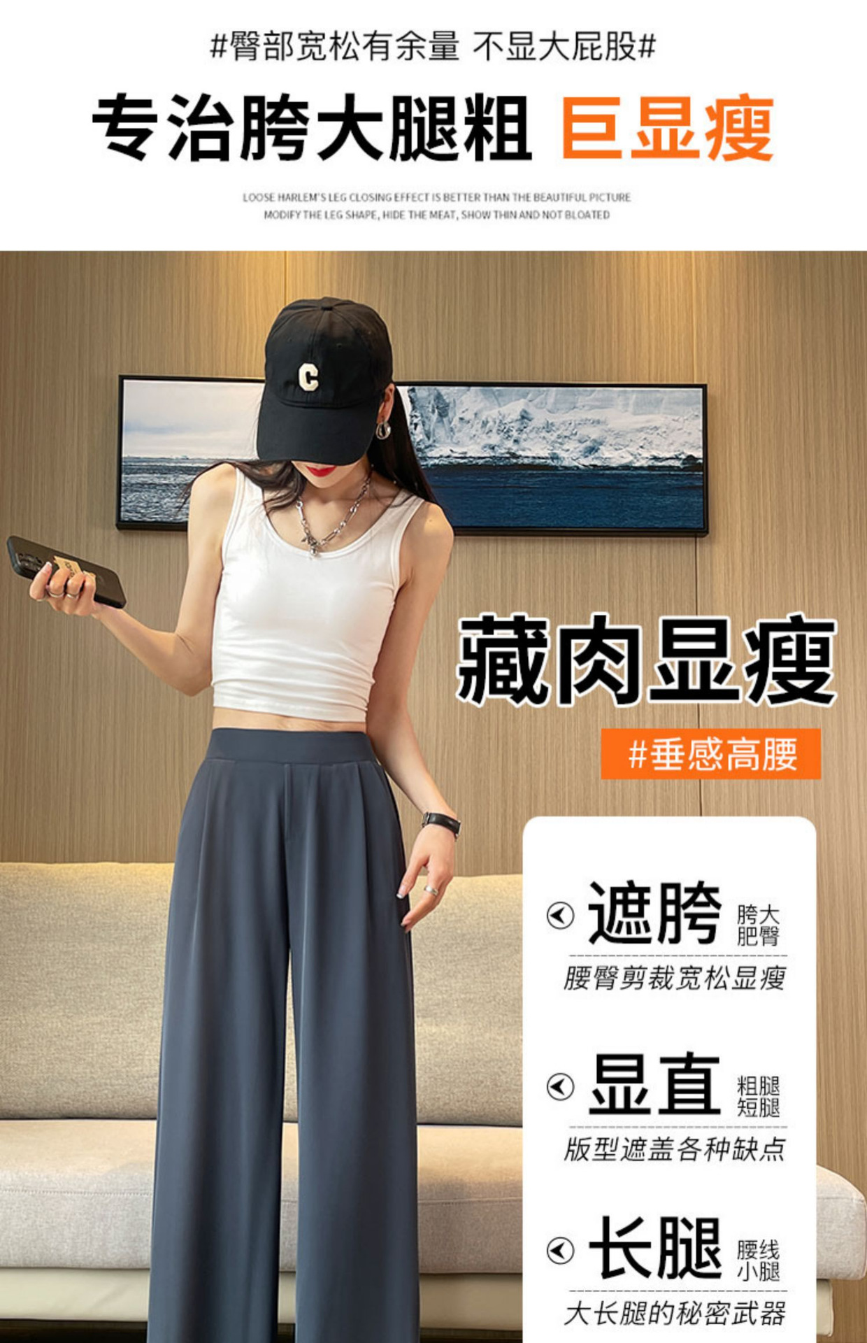 春の夏の新型の垂れ下がった感じの純色の大きいサイズはゆったりしていて、やせているスーツのズボンの韓国版のカジュアルな百合の広い足の9分のズボンの女性を現します。