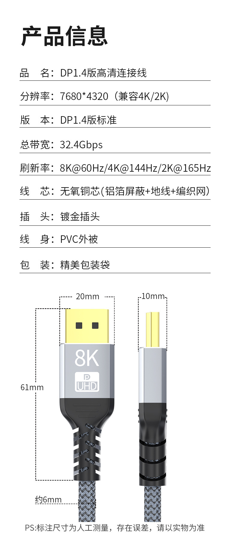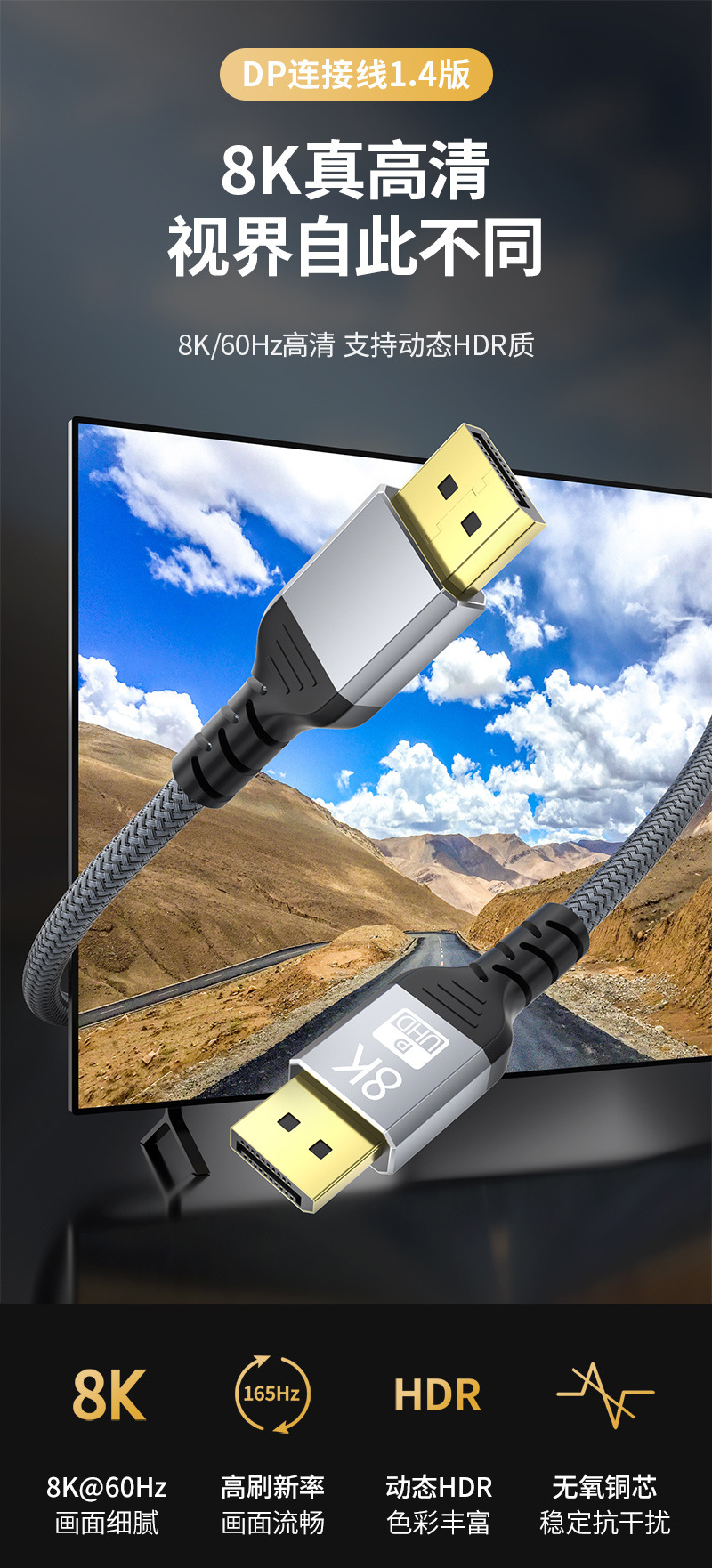 Dp線ハイビジョン8k公対公1.4版60hzデータ線の電気は意外にもビデオカードのテレビのコンピュータのディスプレイの接続線です。