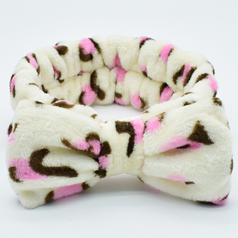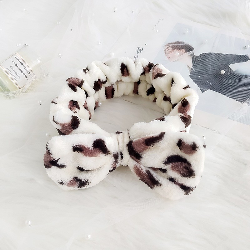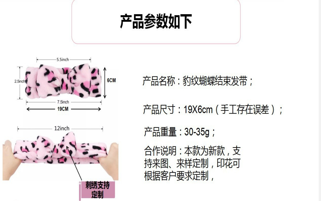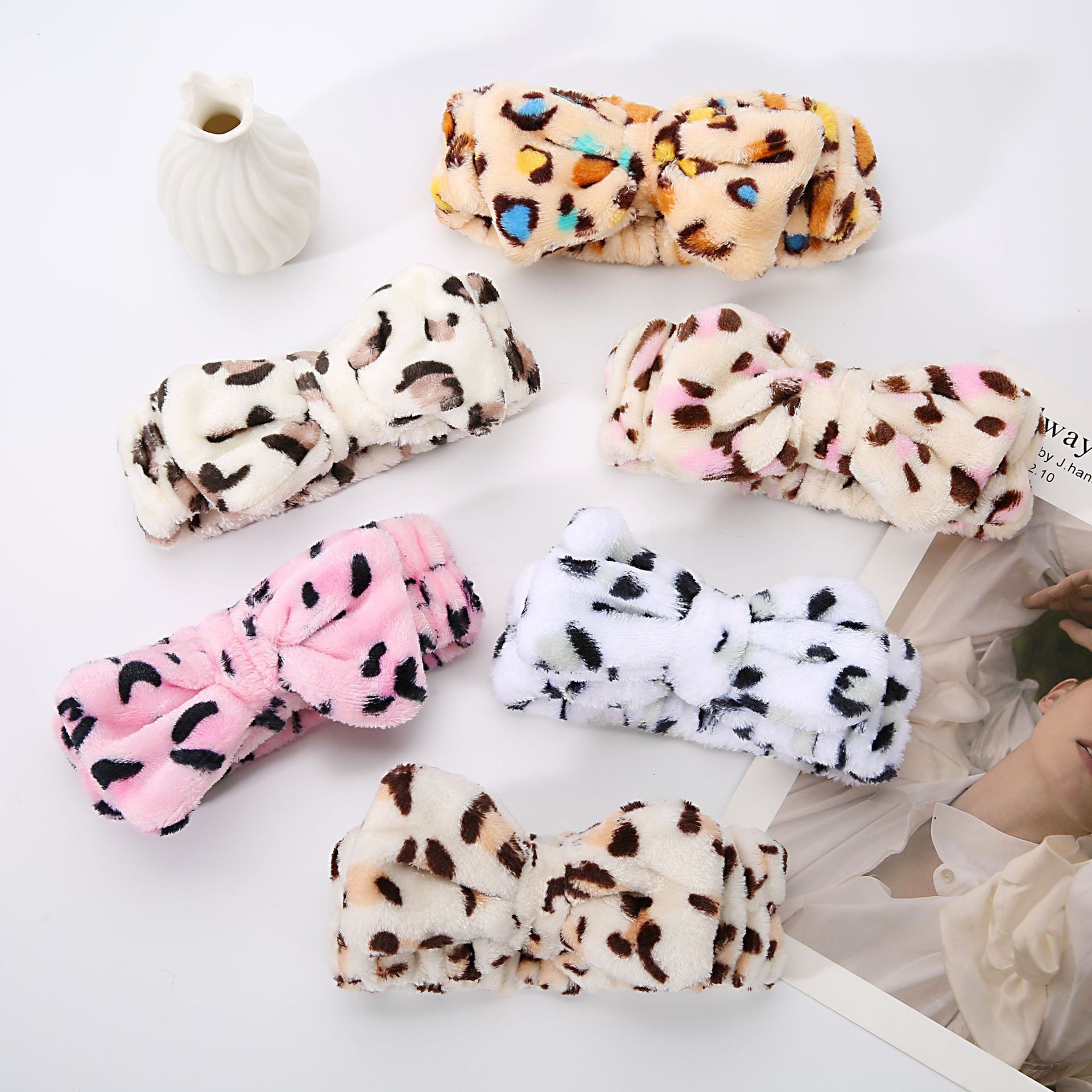 豹纹波点珊瑚绒发带蝴蝶结束洗脸头带化妆发箍毛绒发饰刘海
