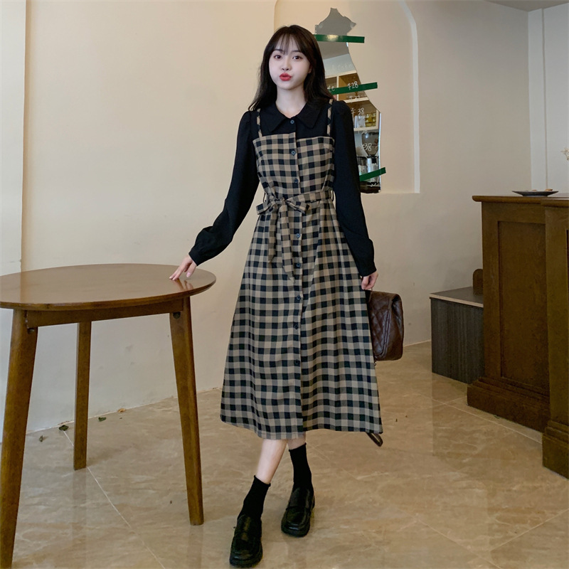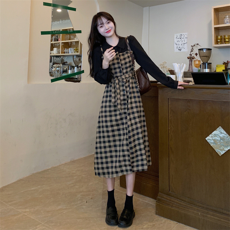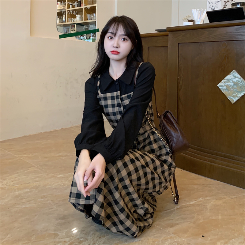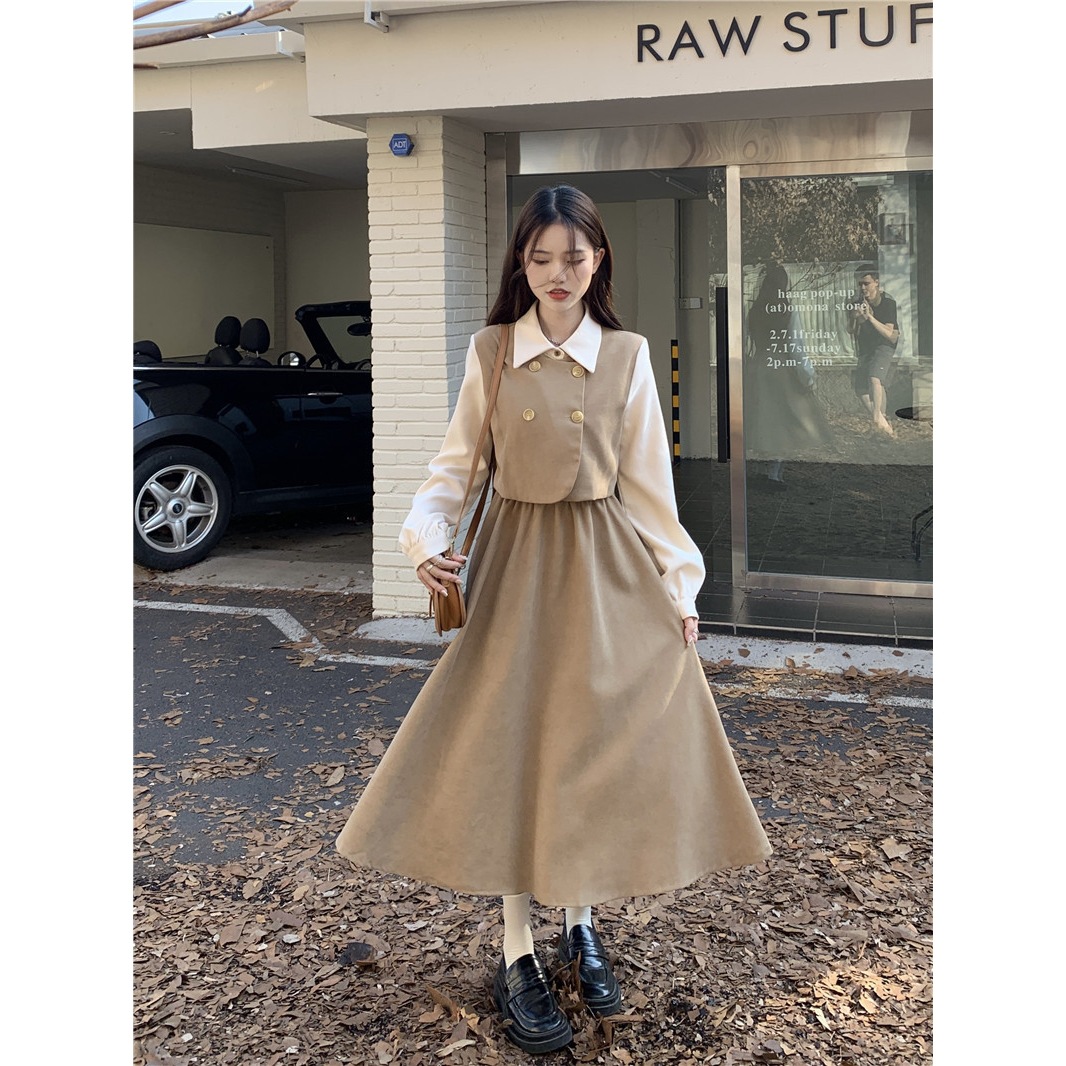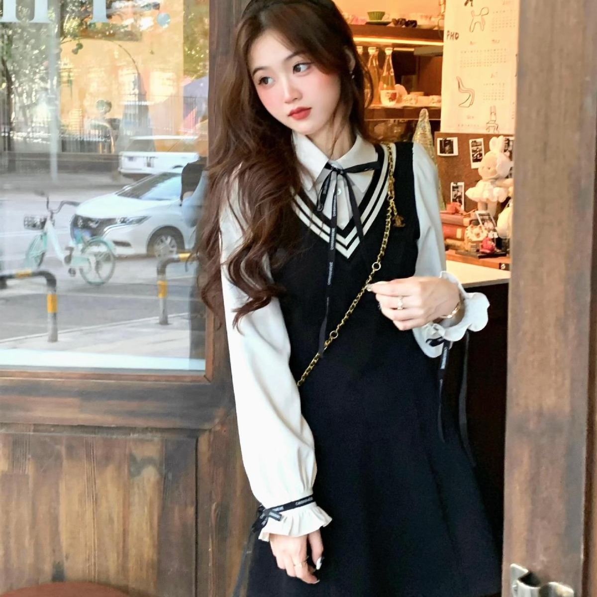 初秋ドレスサスペンダーツーピース和風カレッジスタイルスーツスカート女性の秋冬2025新しいロングスカート