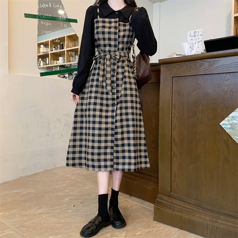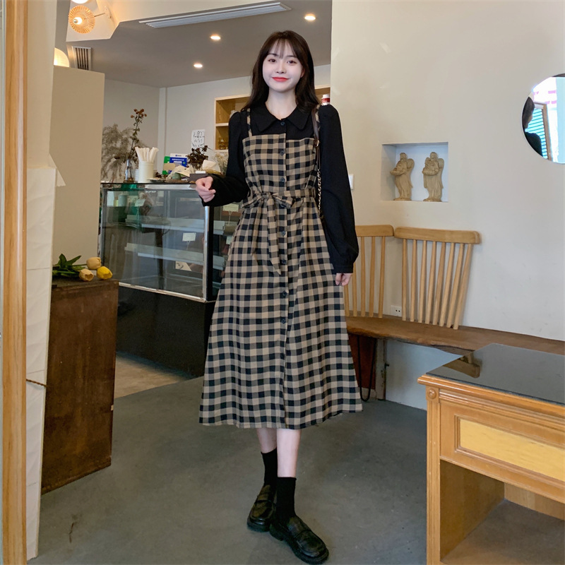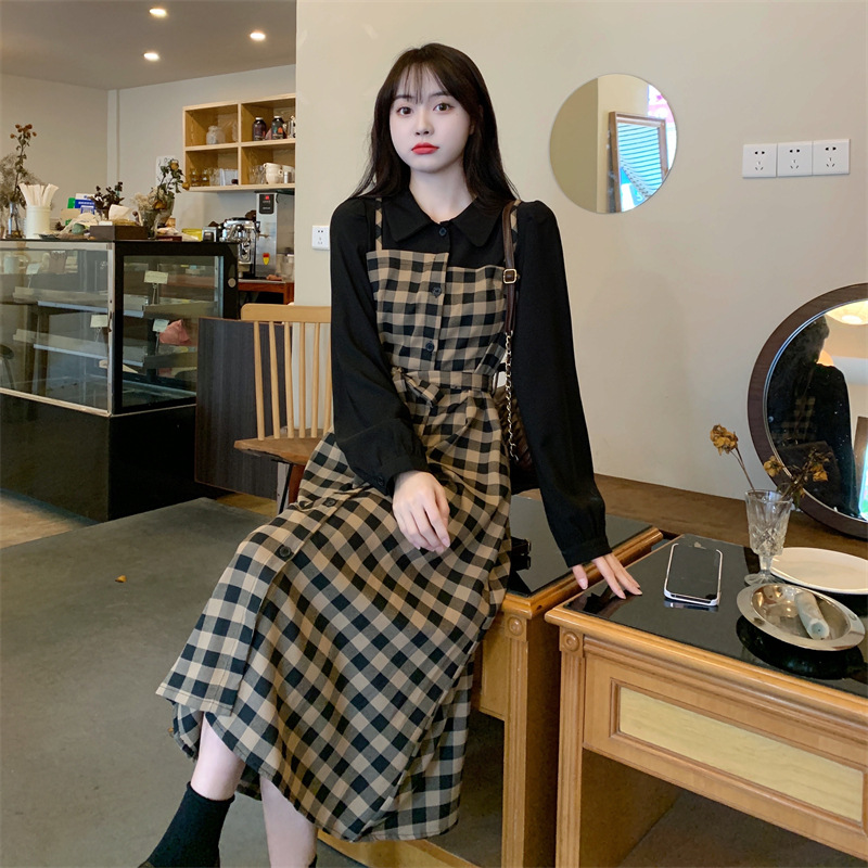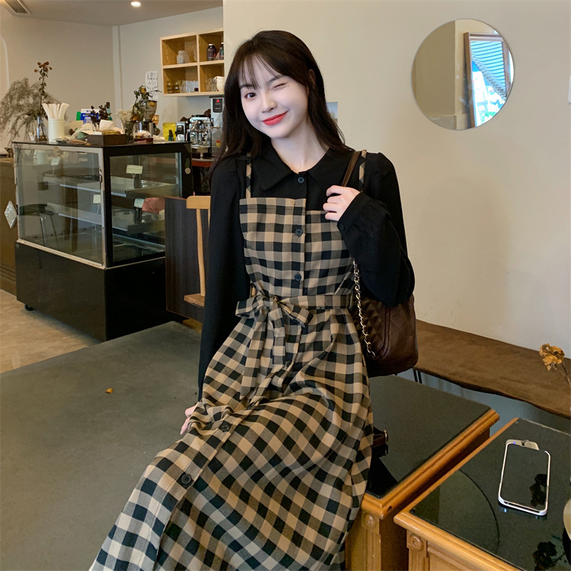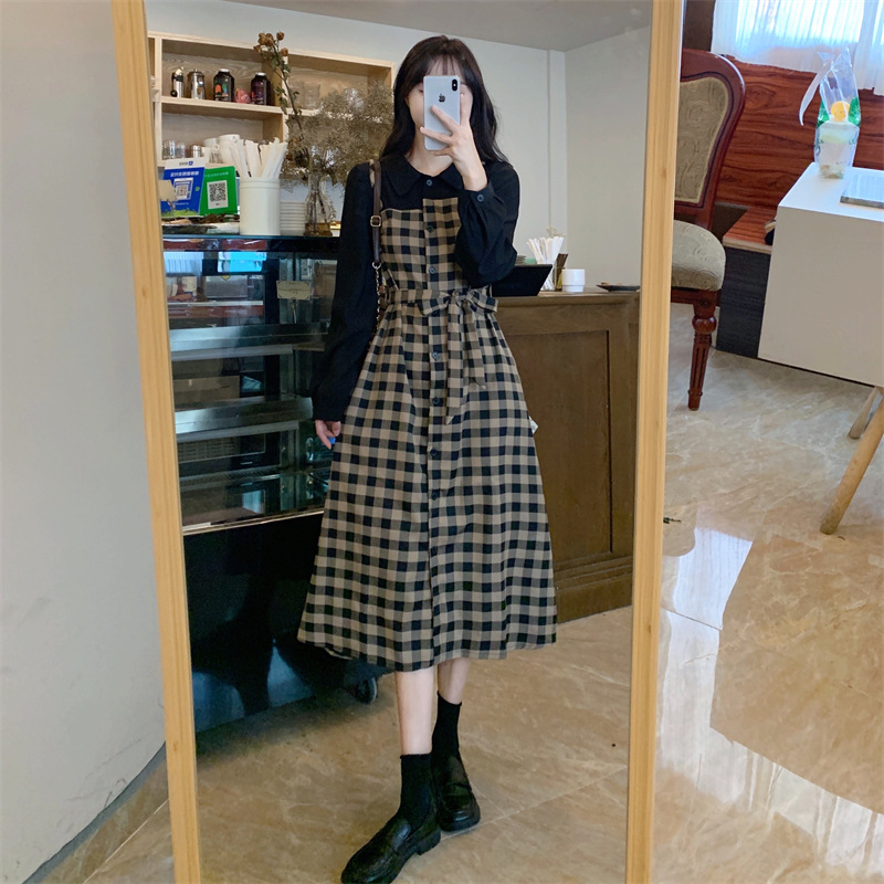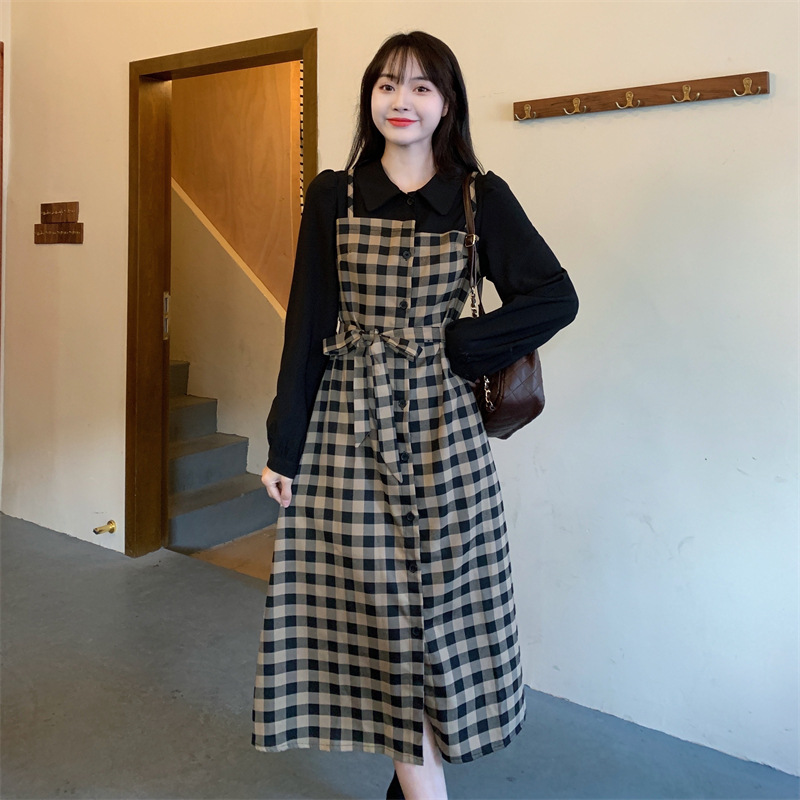 初秋ドレスサスペンダーツーピース和風カレッジスタイルスーツスカート女性の秋冬2025新しいロングスカート
