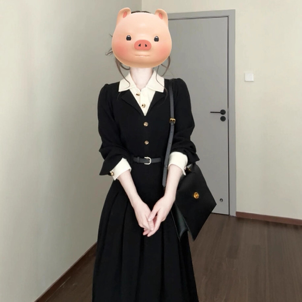 法式高级感黑色polo领衬衫连衣裙子女2025新款秋冬穿搭假两件长裙