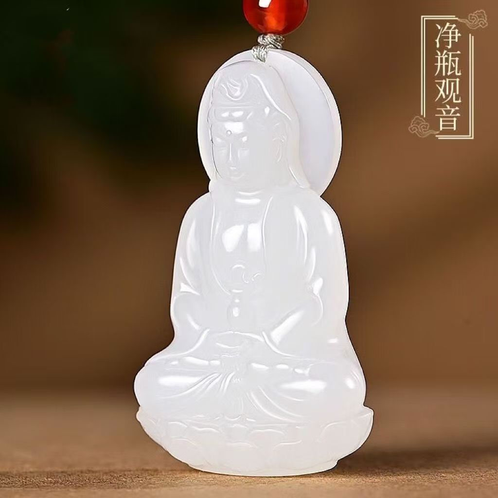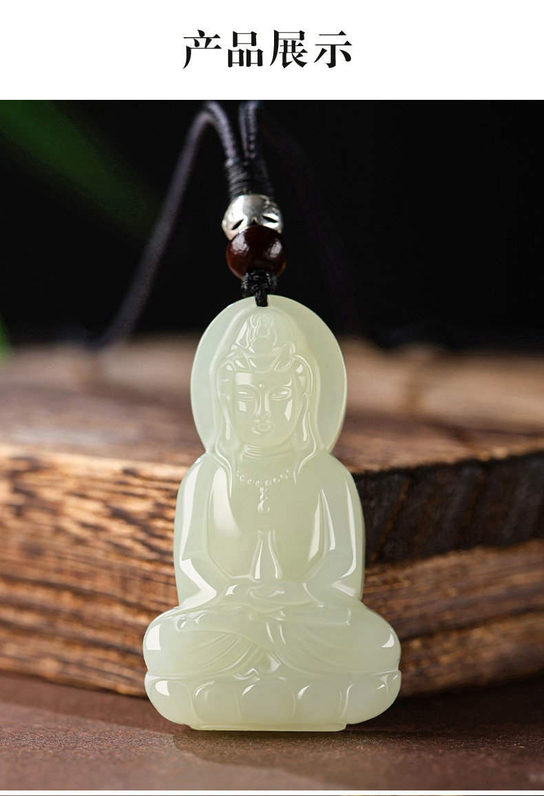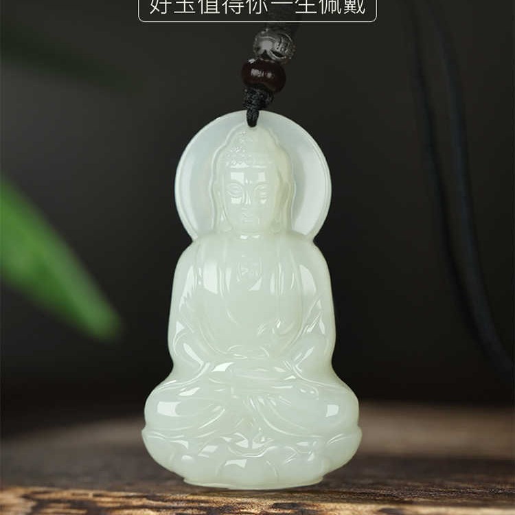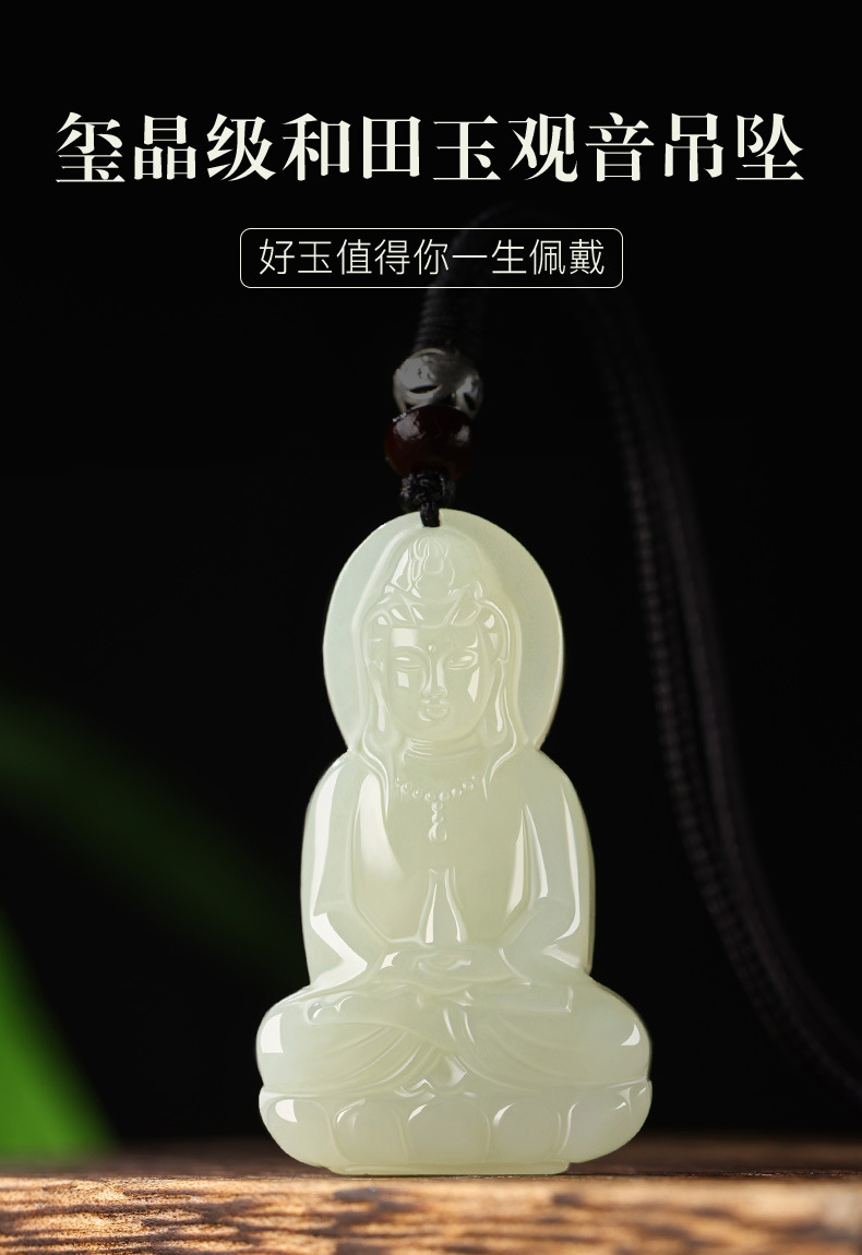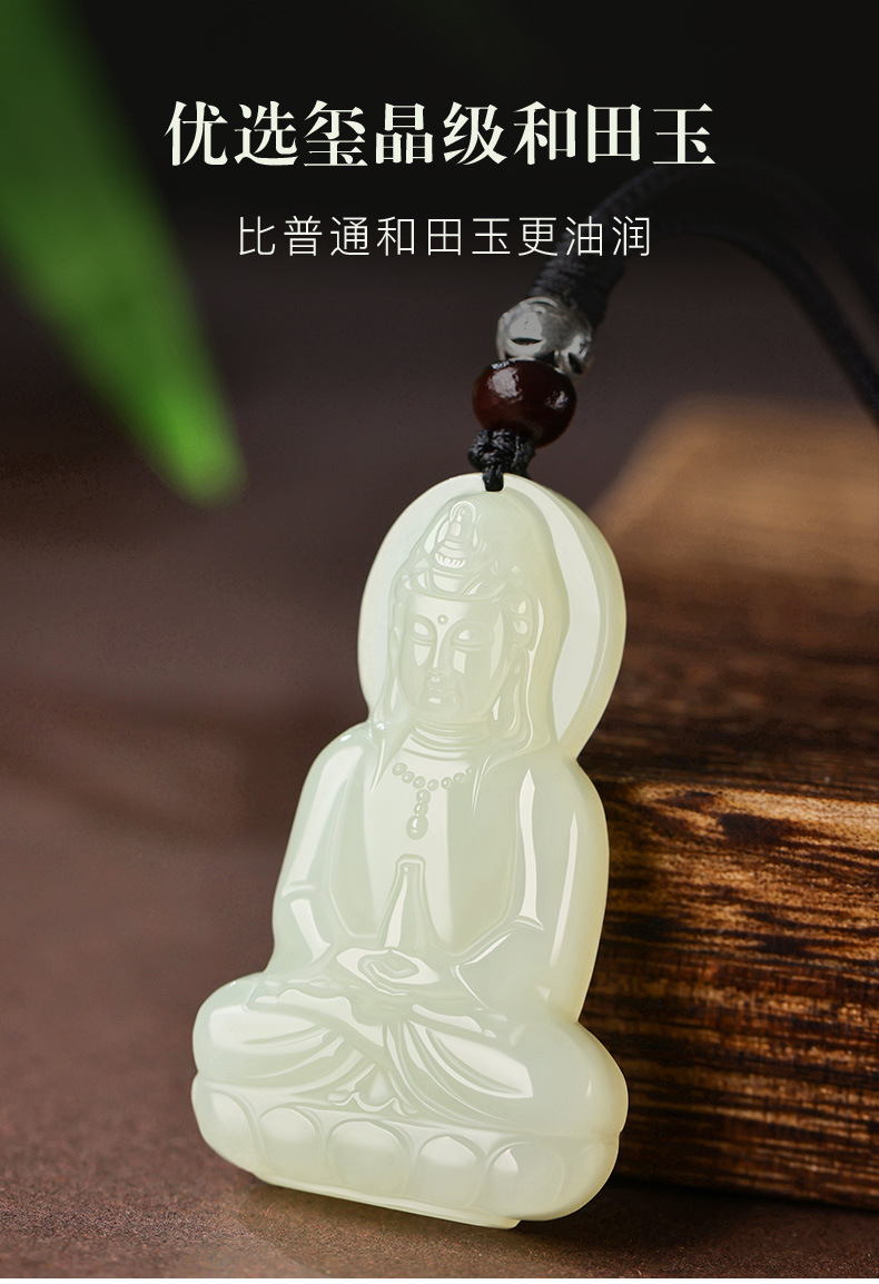 天然新疆和田玉観音ペンダント男性用精雕和田玉坐莲観音菩萨玉ペンダント