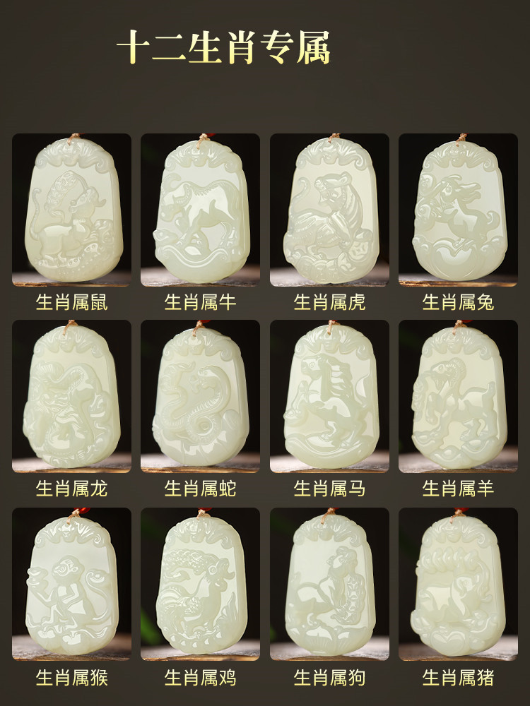 玉器卸売り天然新疆和田玉十二生肖ペンダント男女モデル和田玉白玉生肖玉ペンダント