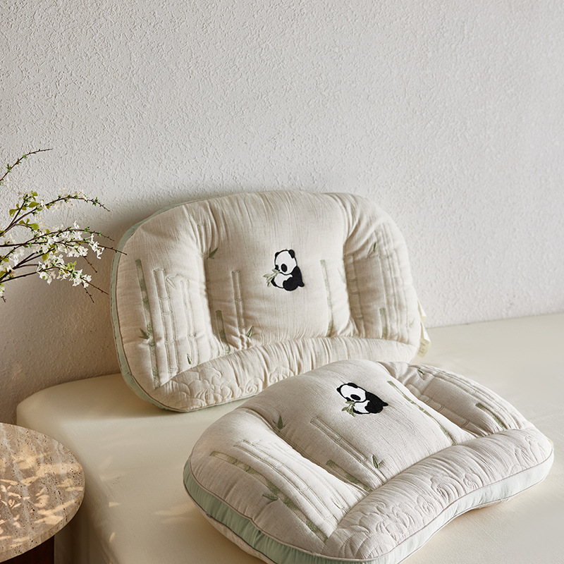 竹麻枕芯首保護枕枕芯パンダ刺繍枕セット中枕竹繊維枕シングルペア2