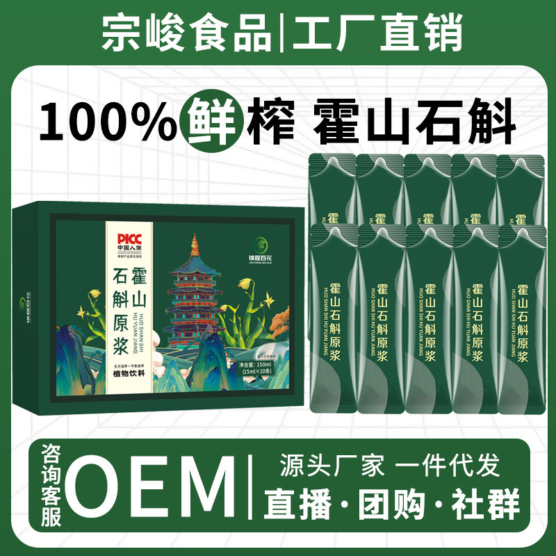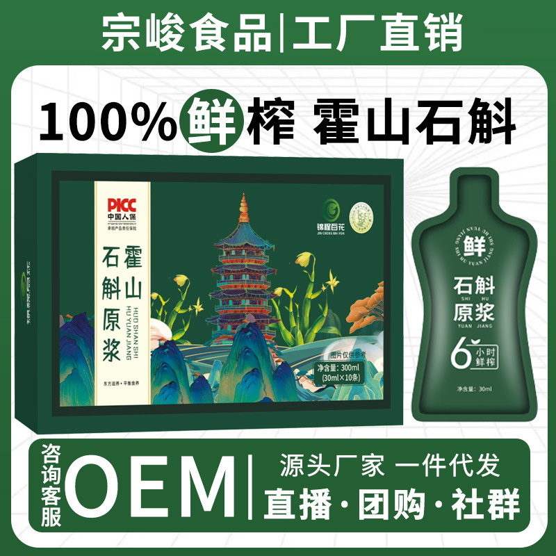 霍山石斛原浆饮料五年枫斗鲜榨铁皮石斛厂家直销现货秒发定制包装