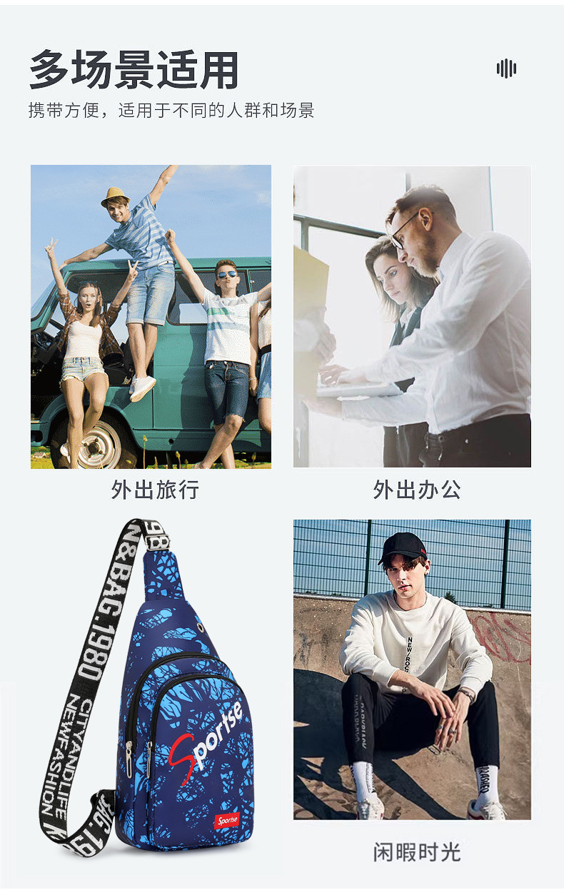 时尚斜挎包胸包多功能运动腰包实用大容量运动户外男士包外贸批发