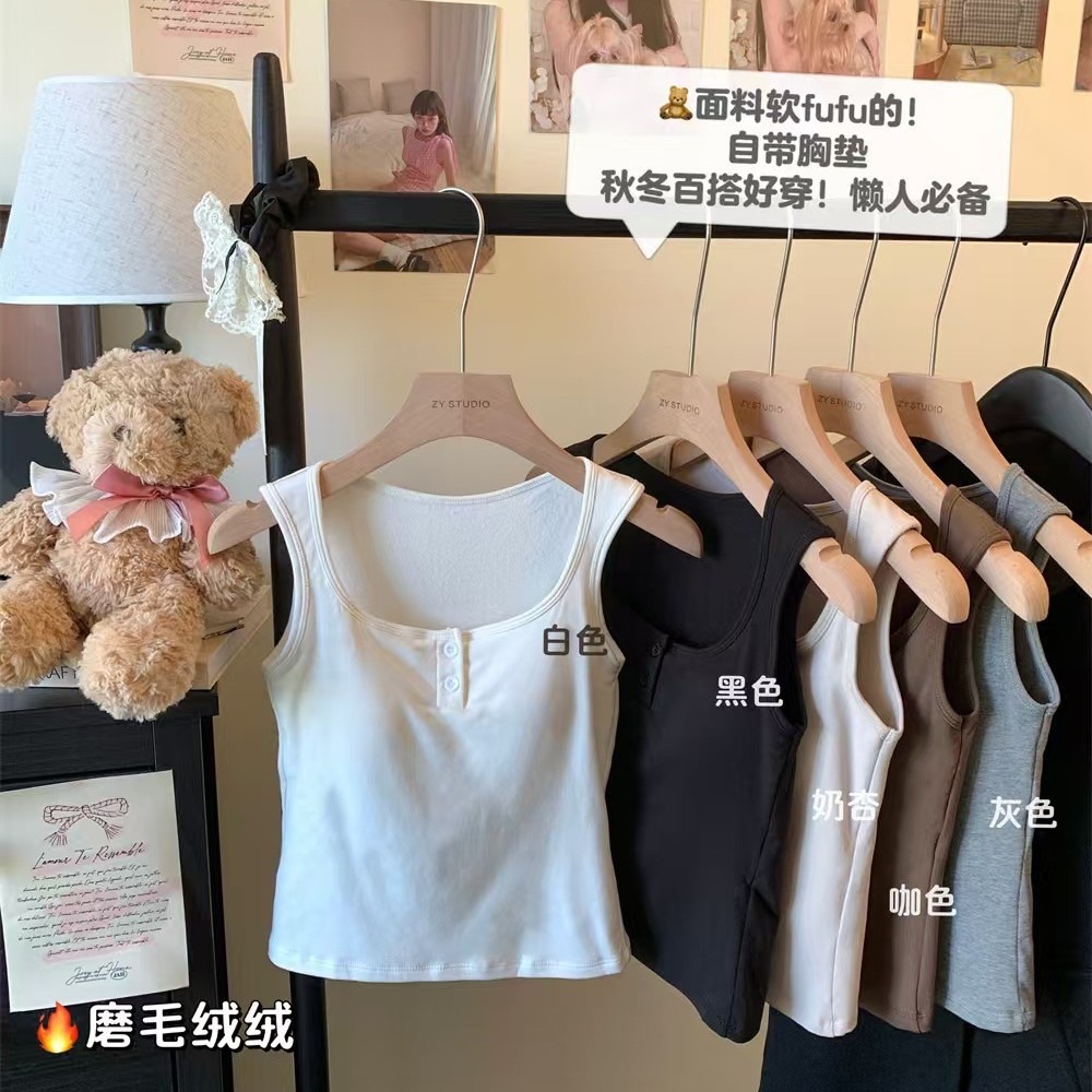 秋の毛磨きベルベットの広い肩ベストの女性は帯電防止の胸パッドの胸を厚くして保温下着の女性を集めて底をつく