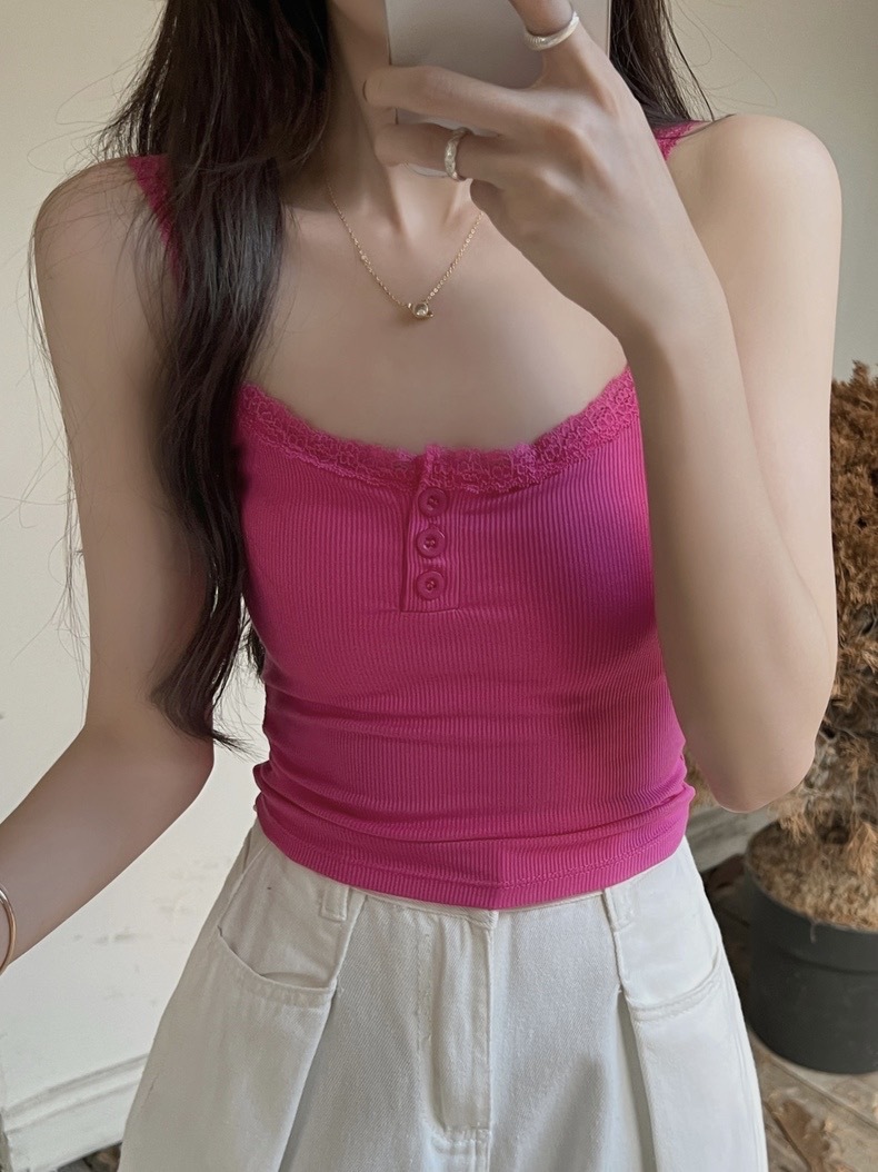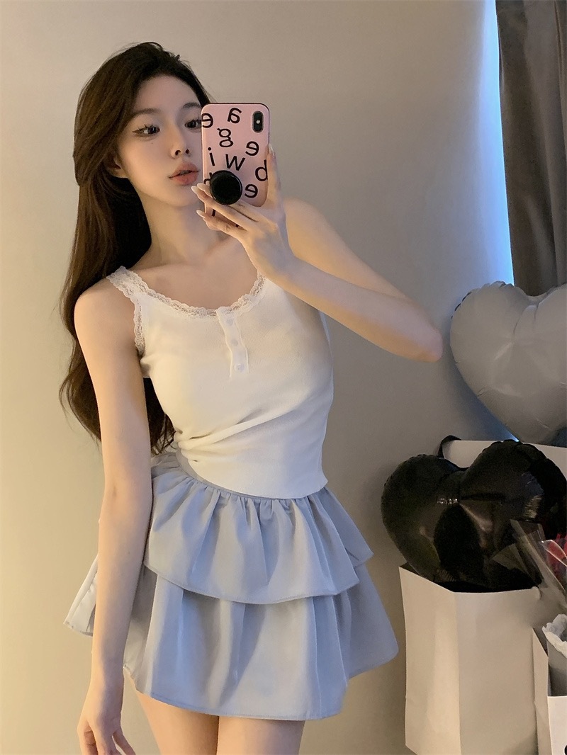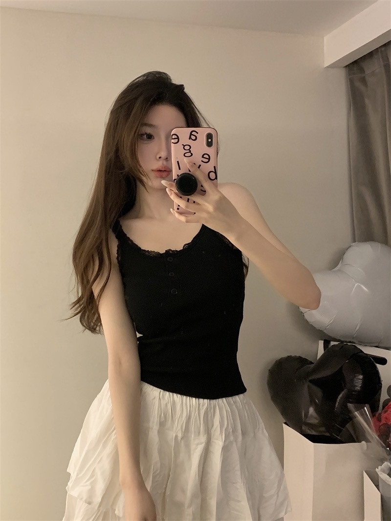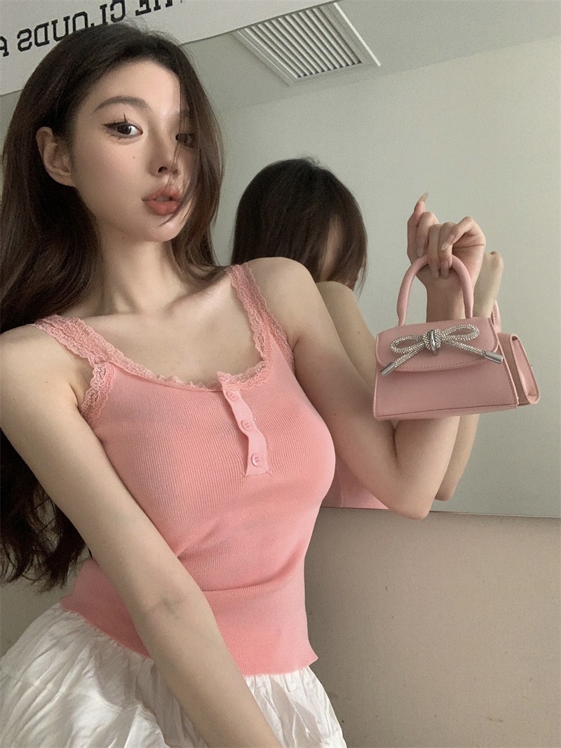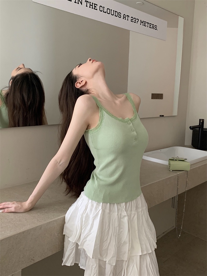 夏のギャルは純色のしわのストラップを合わせて胸のクッションを持っています。