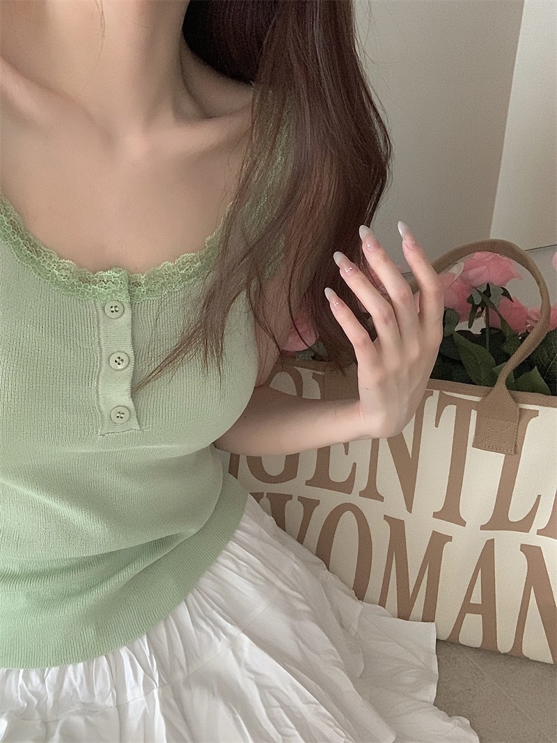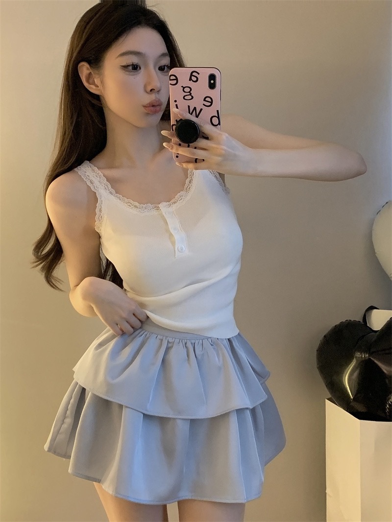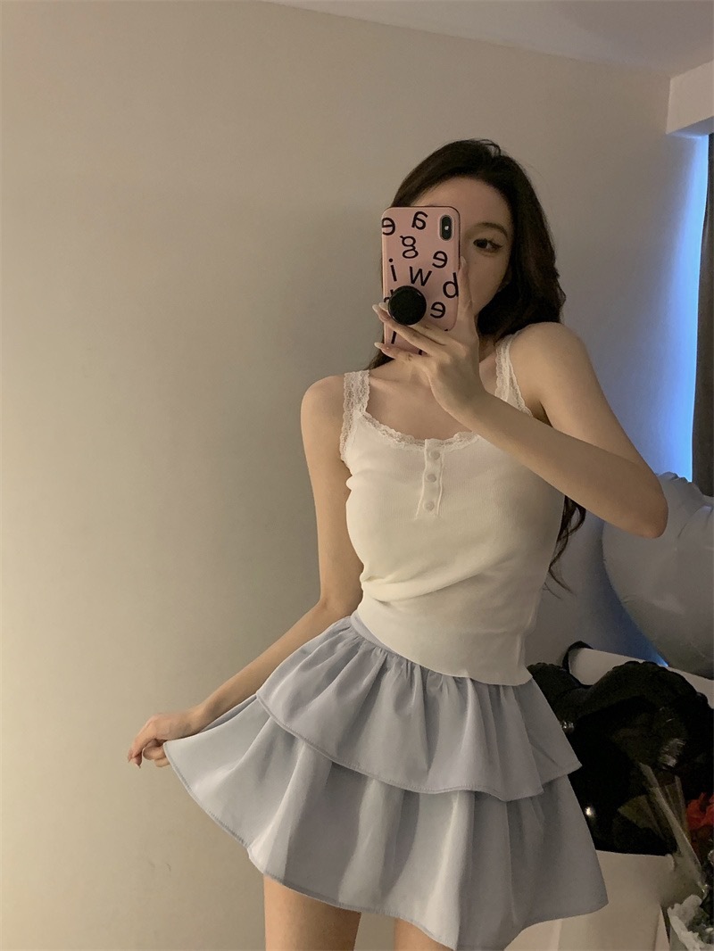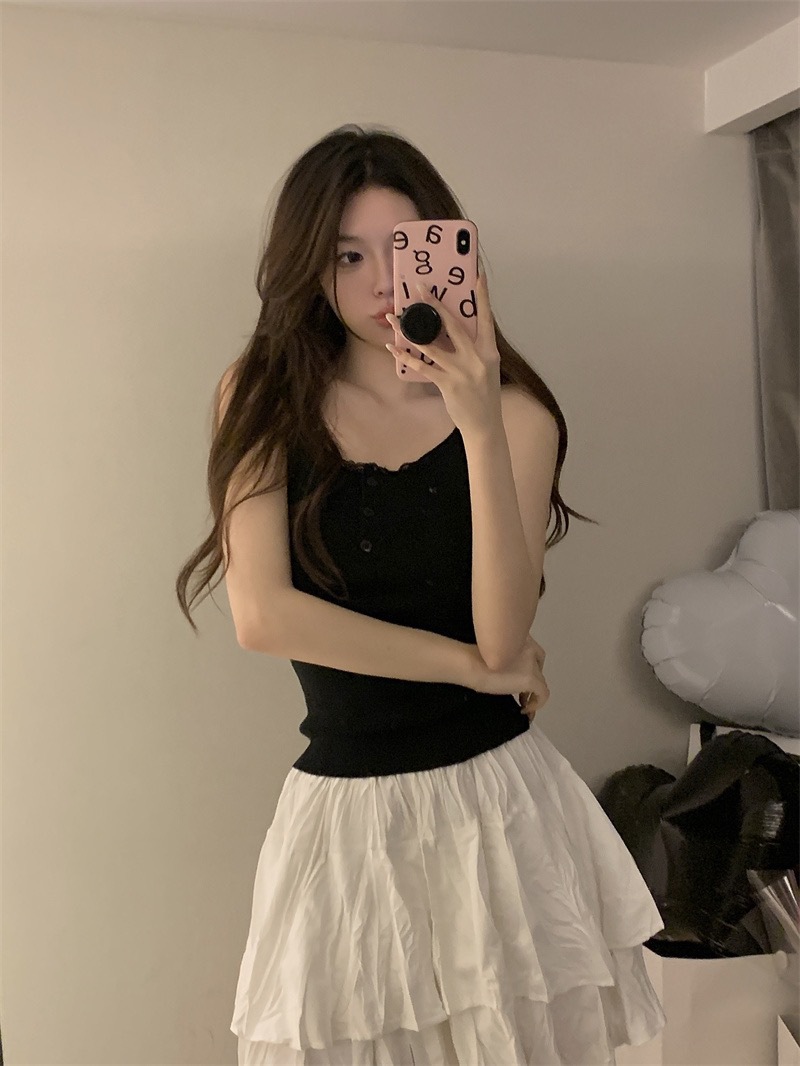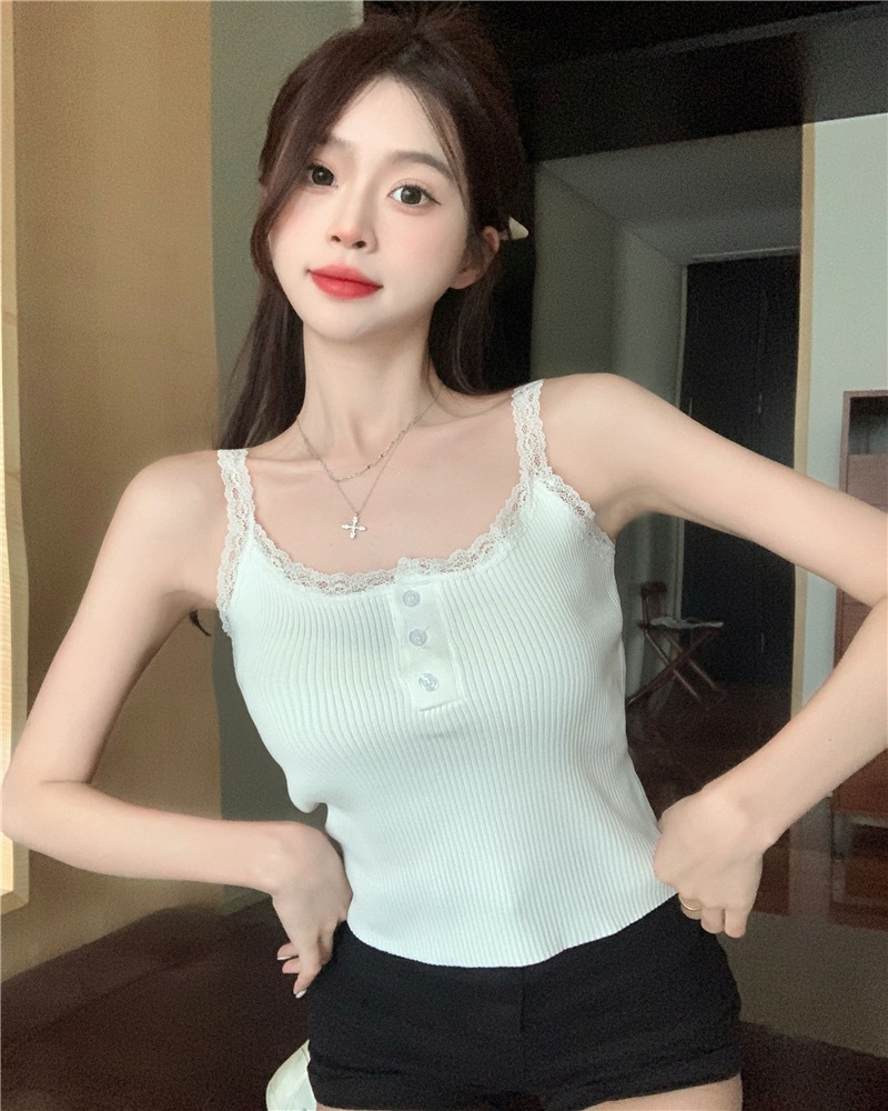 夏のギャルは純色のしわのストラップを合わせて胸のクッションを持っています。